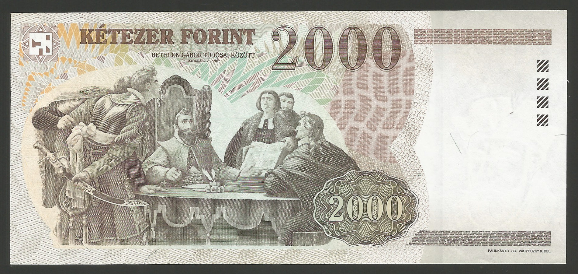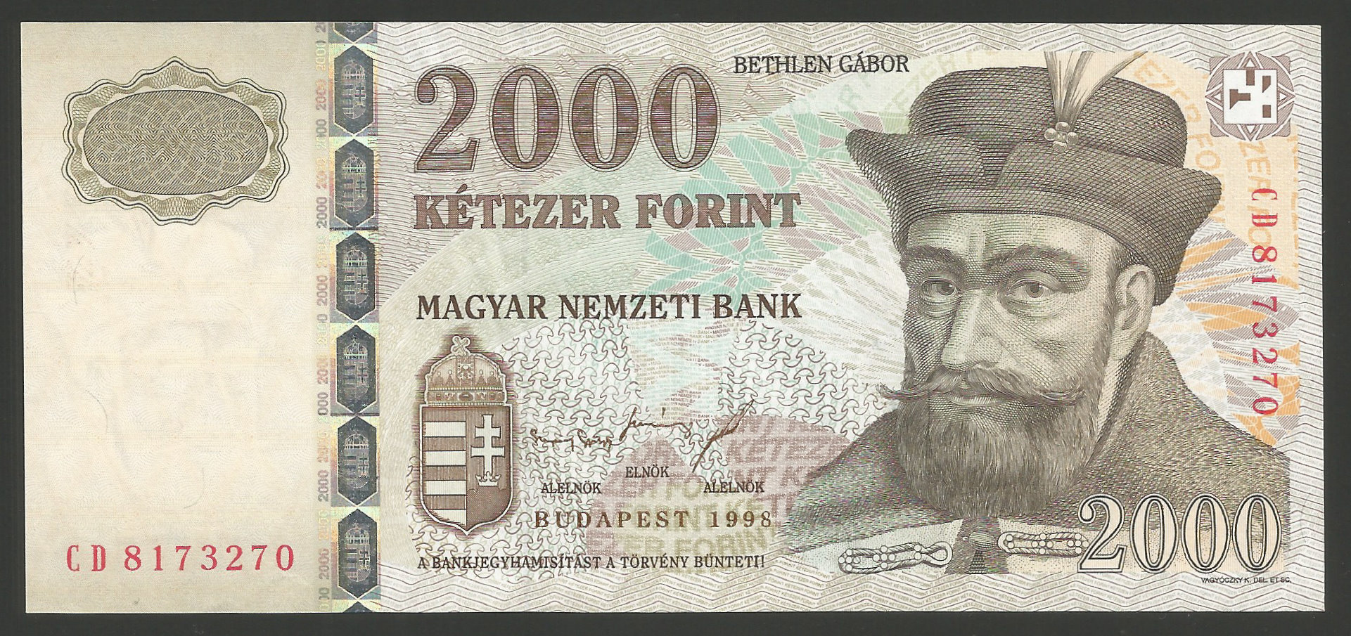 2000 forint 1998 CD kiváló állapotban, nagyon enyhe köteghajlásszerű nyom függőlegesen, mely nem fut végig a bankjegy teljes hosszán. Ritka betűjel! (bp