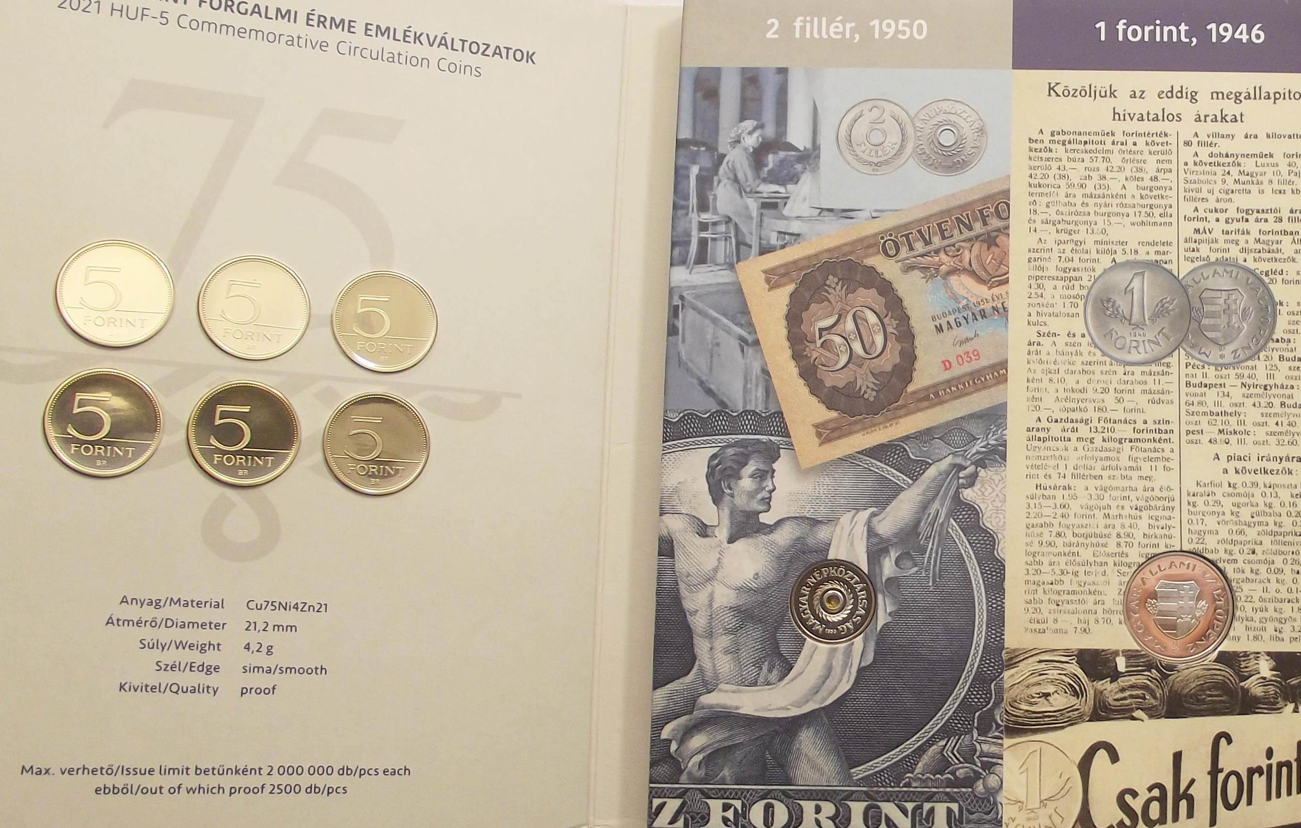 2021 75 éves a Forint ikonikus forgalmi sor, kiváló állapotban (fj