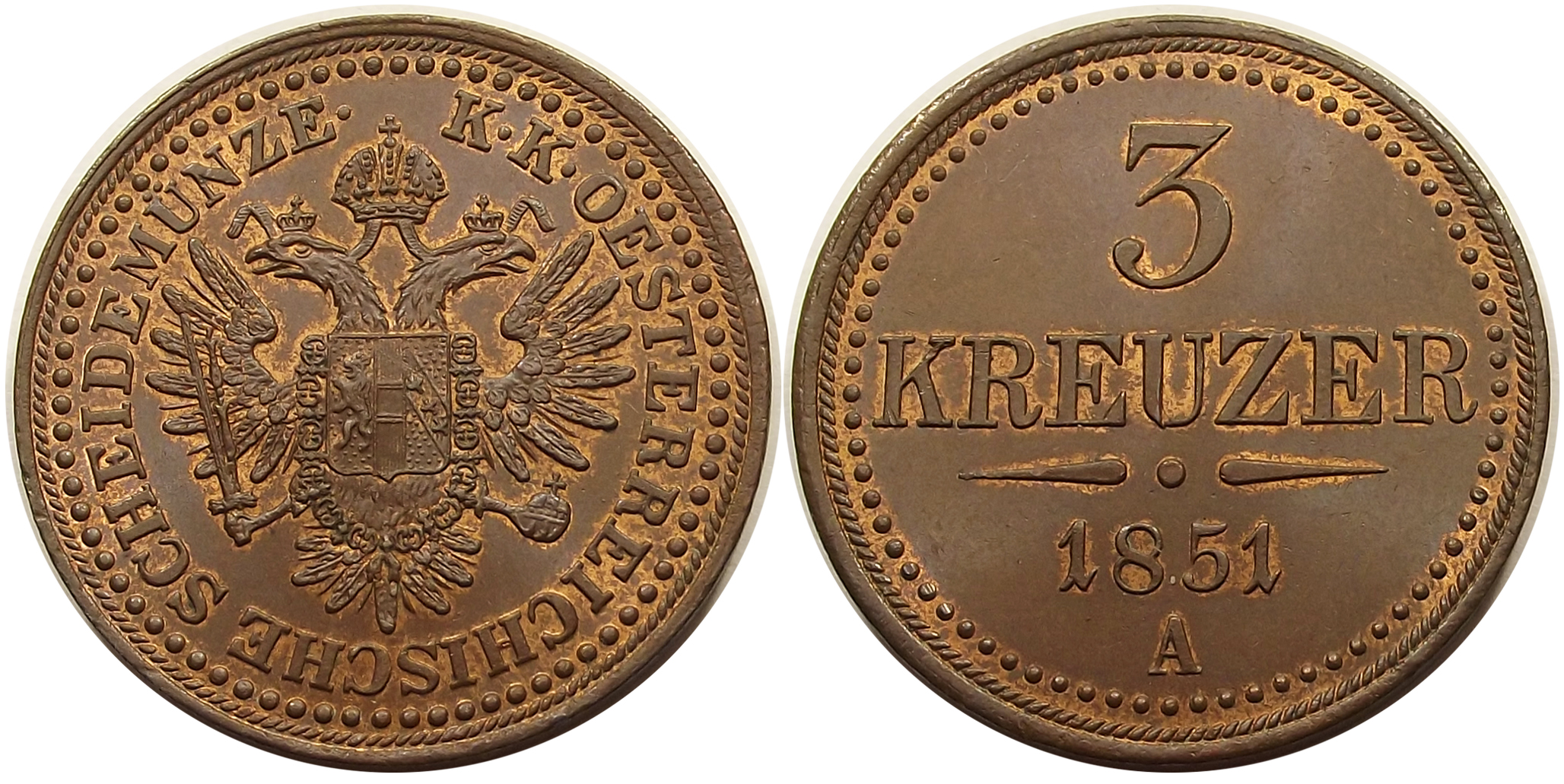 3 krajcár 1851 A extra állapotban, patinával, alatta kivehető verdefénnyel. Ebben a tartásban ritka. (b