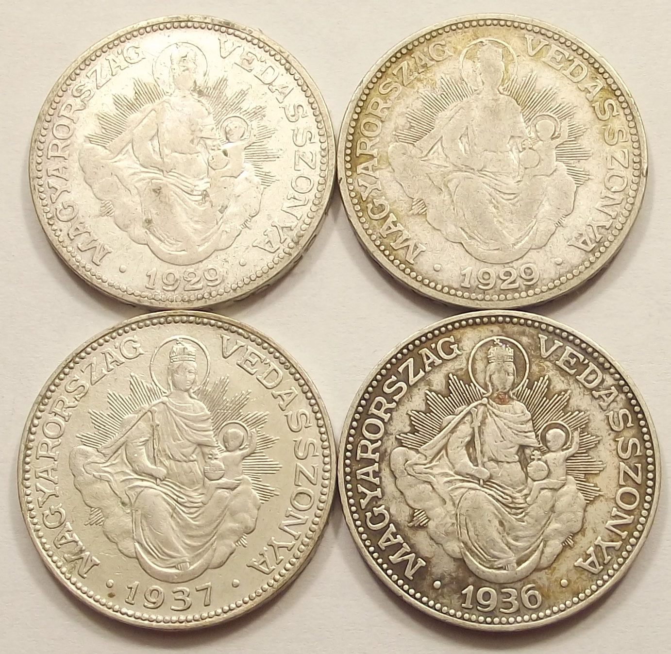 4 db Madonnás 2 pengő 1929-1937 szép állapotban. (p