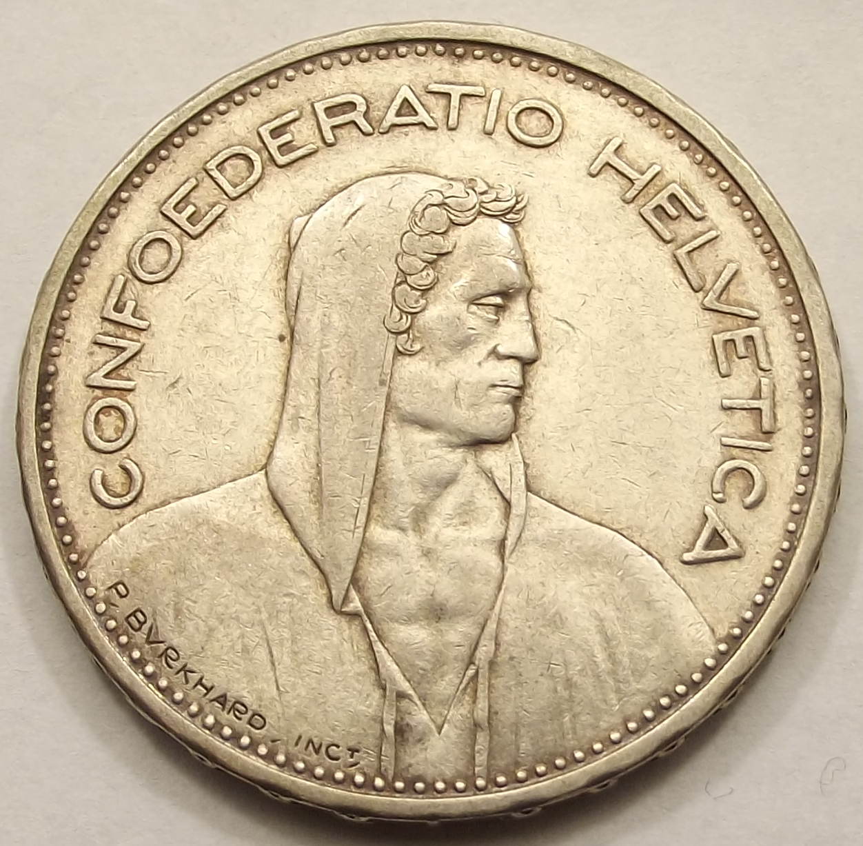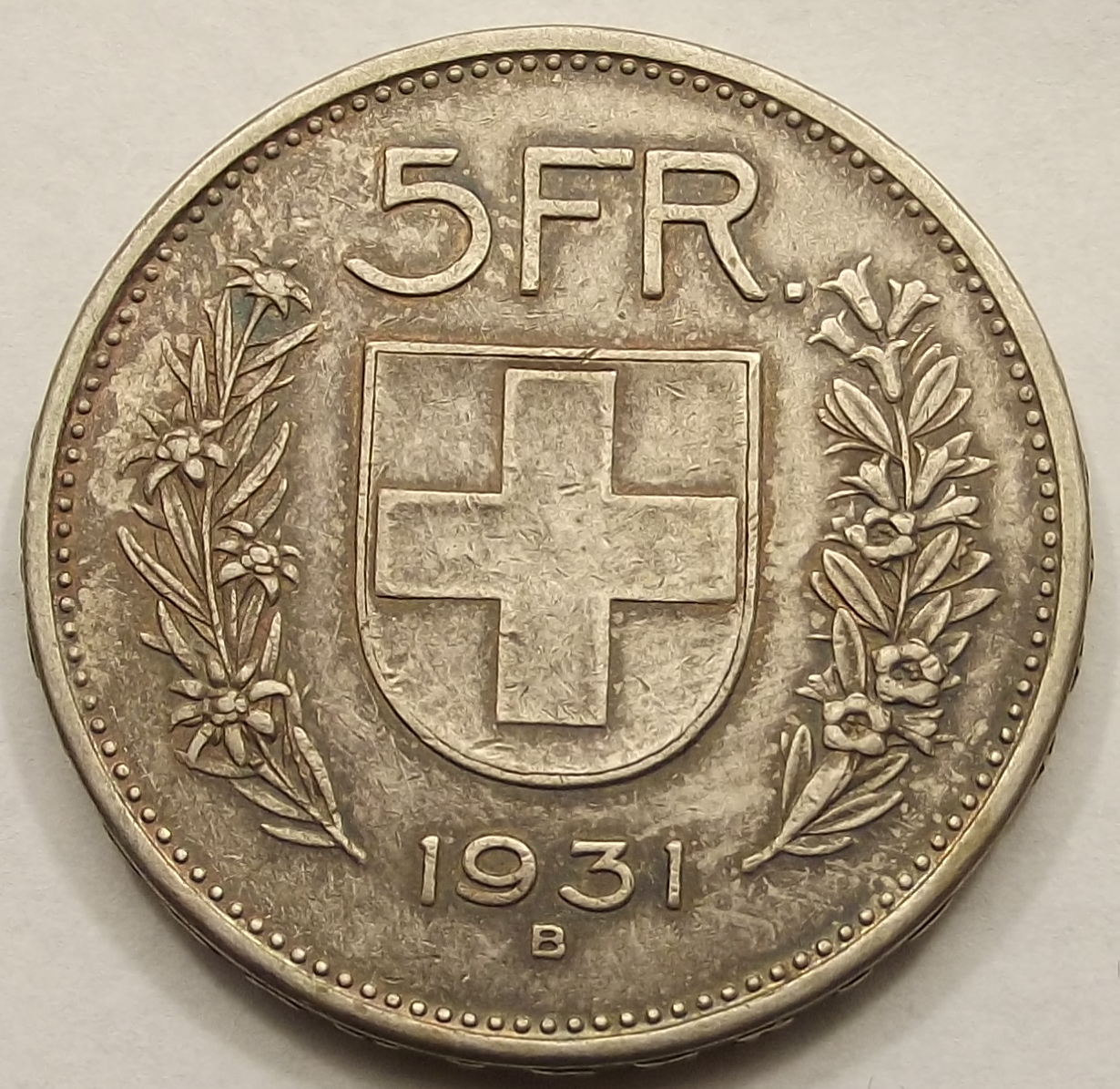 5 frank 1931 B Svájc, nagyon szép állapotban (gyt