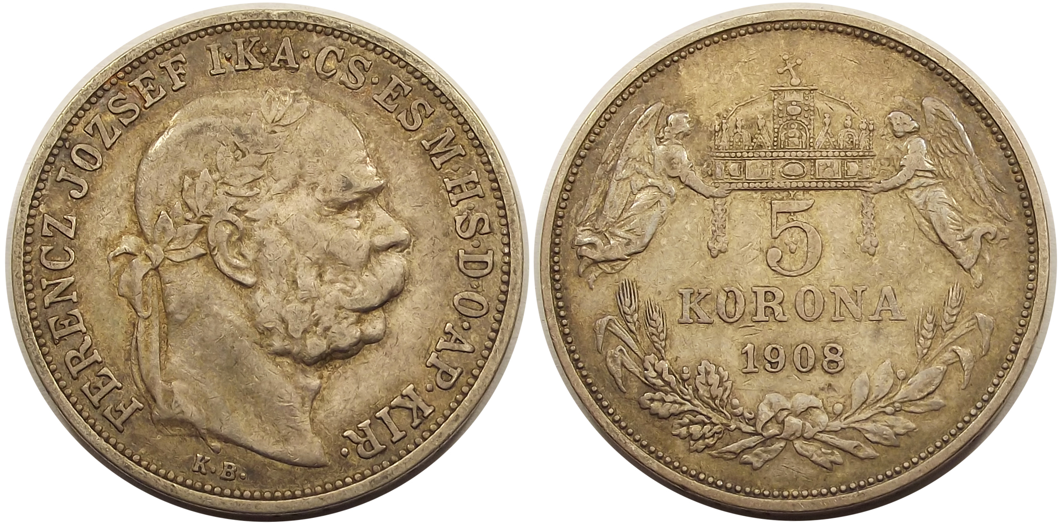 Főoldal Fémpénzek Magyar pénzek Ferenc József 1848-1916 5 korona 1908 Ferenc József