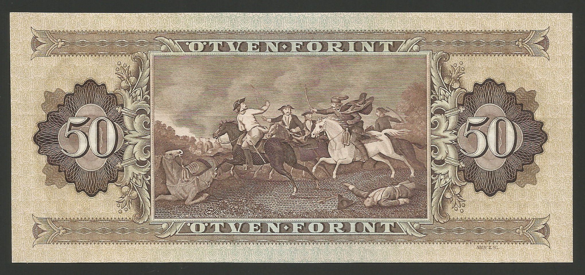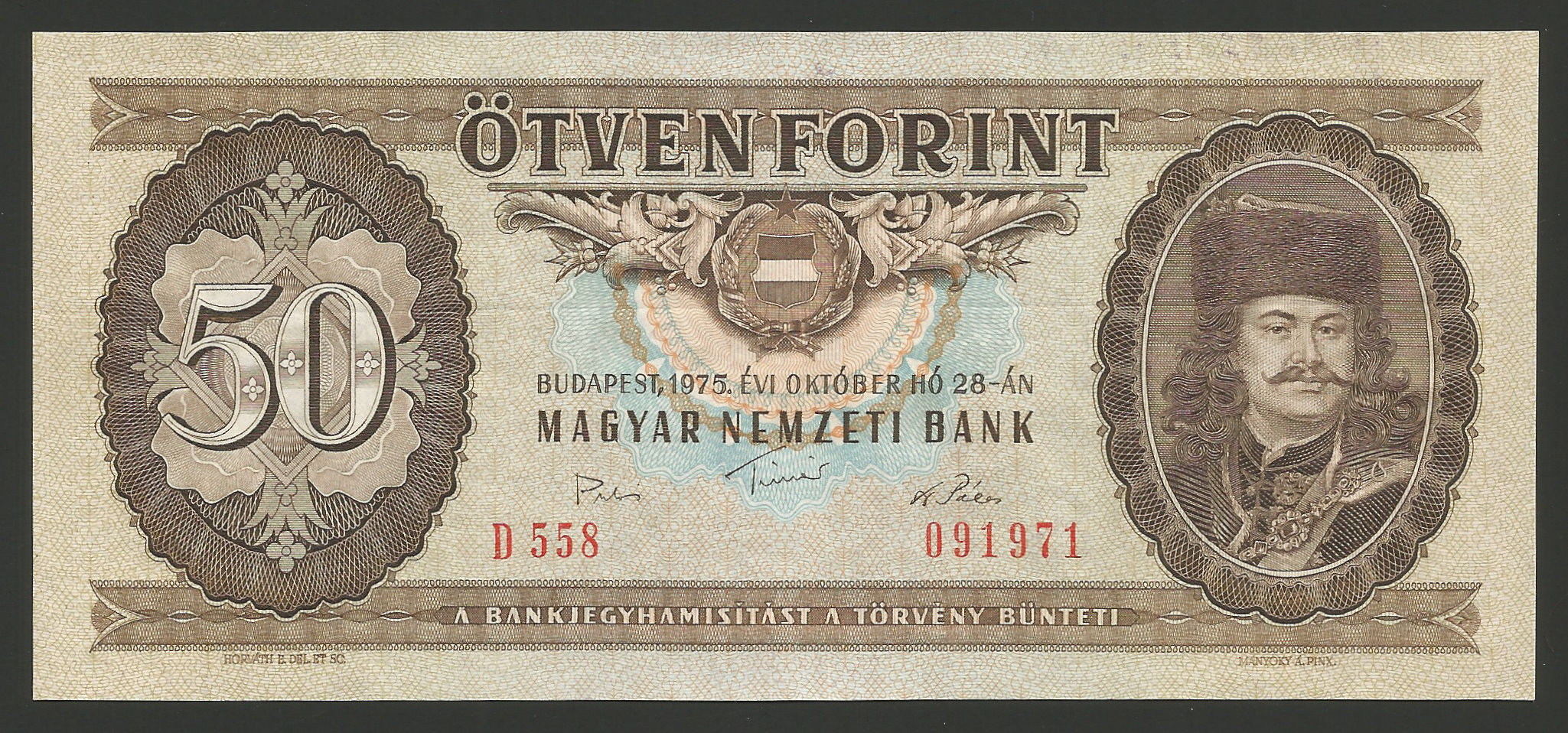 50 forint 1975 kiváló állapotban, középső hajtással, erős papírral. Keresztben gyári papírránc (g