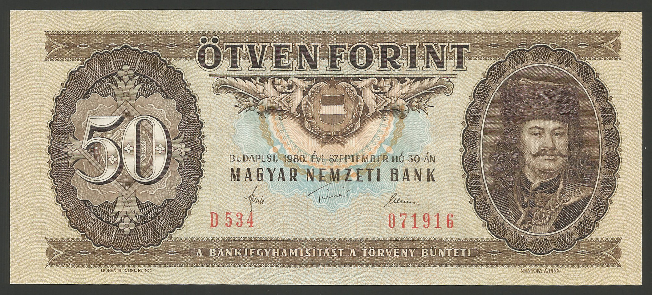 Főoldal Papírpénzek Magyar papírpénzek Forint rendszer 1946- 50 forint 1980 D