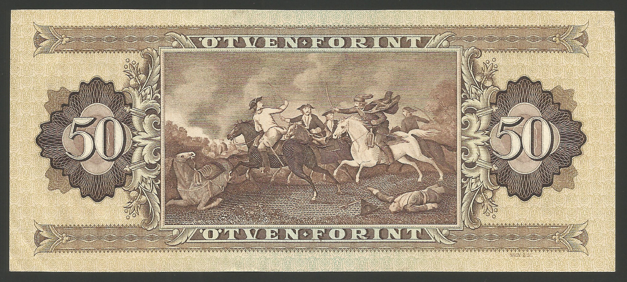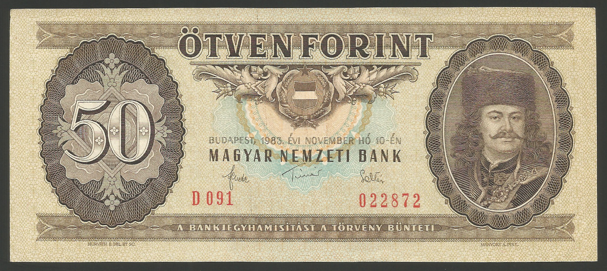 50 forint 1983 kiváló állapotban, apró szamárfül, sarkoknál kis hajlás. Enyhe köteghajlás (sf