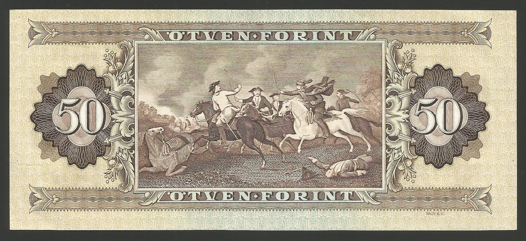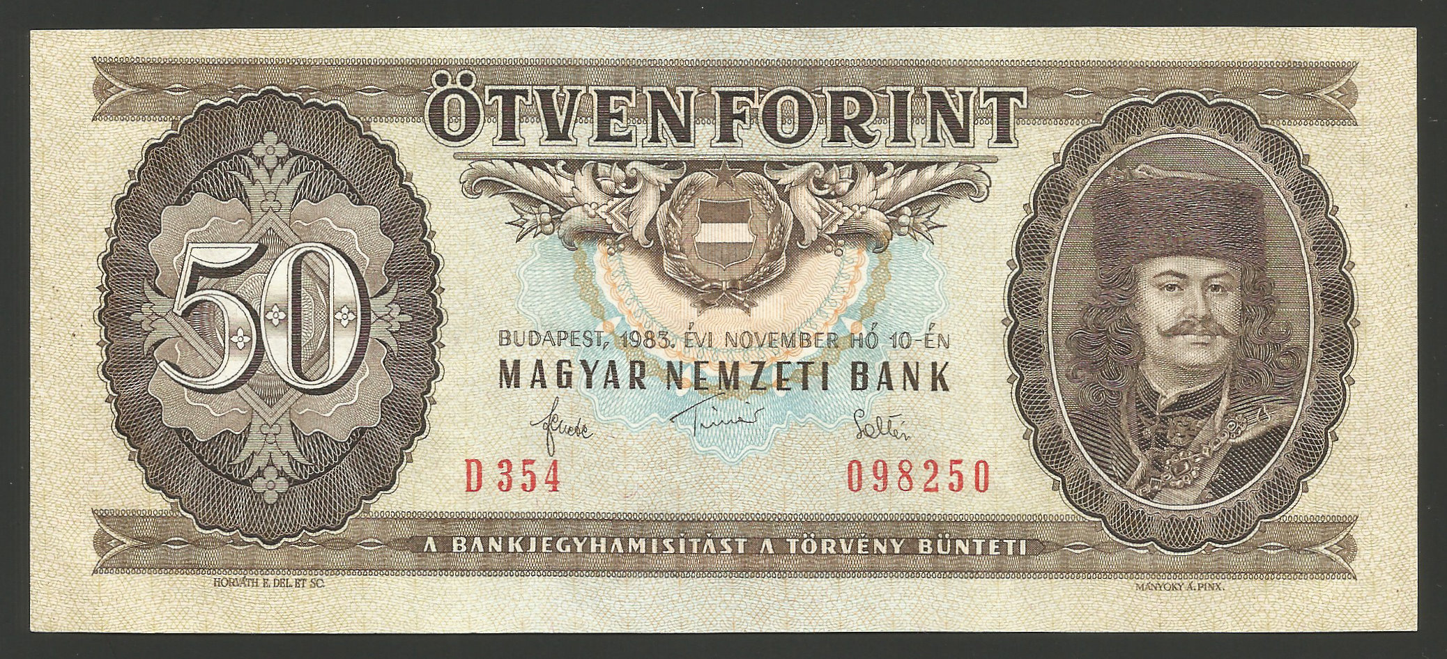 50 forint 1983 kiváló hajtatlan állapotban, enyhe papírgyűrődés a bankjegy bal felén (g