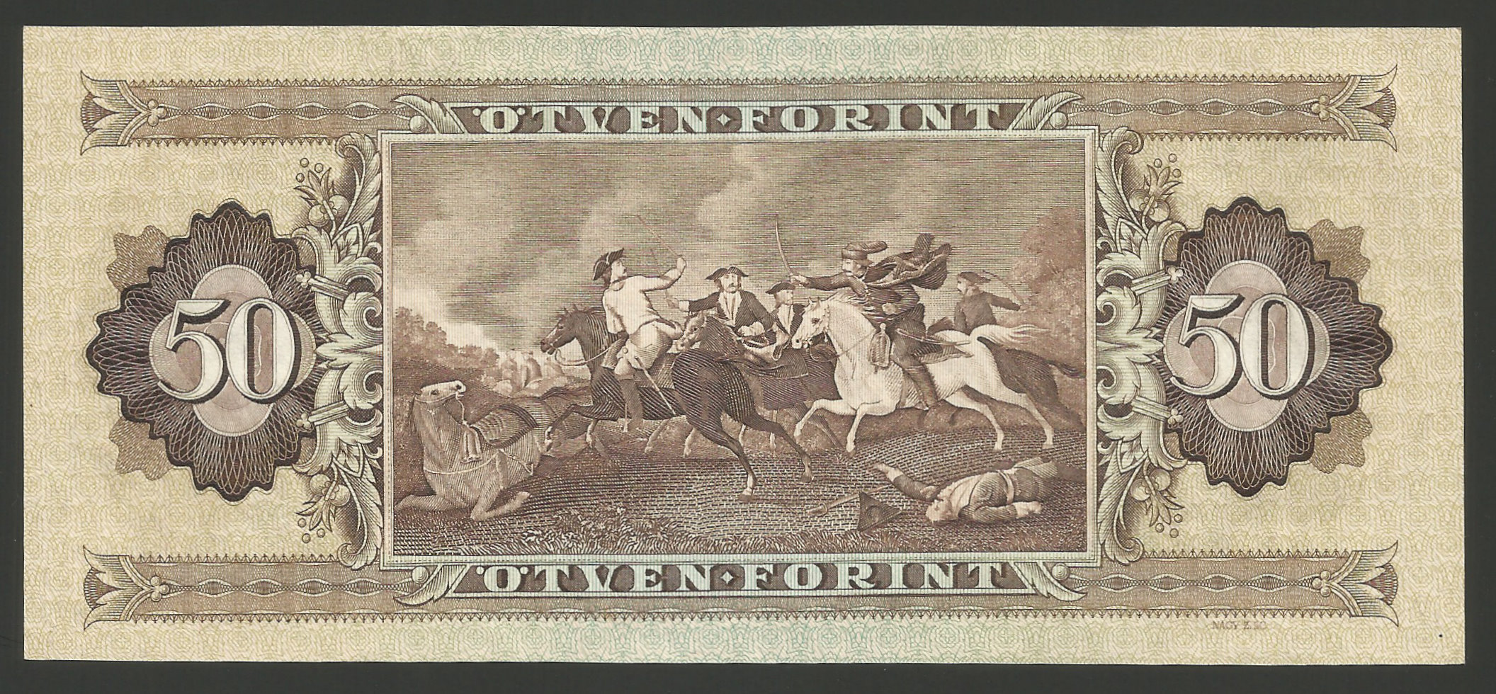 50 forint 1986 kiváló állapotban, enyhe függőleges hajtás illetve hajlás a bankjegyen (le