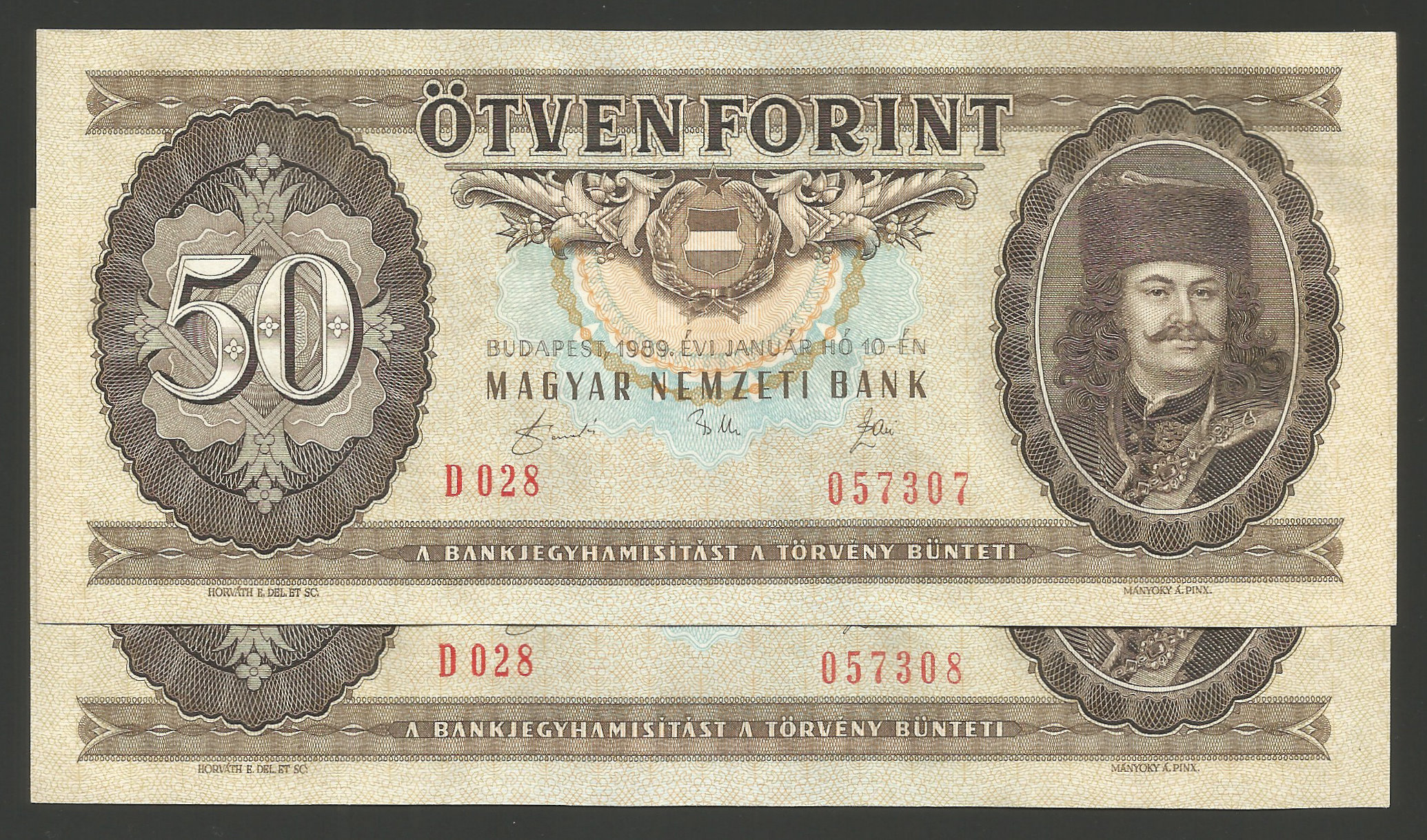50 forint 1989 – sorszámkövető pár kiváló hajtatlan állapotban (pg