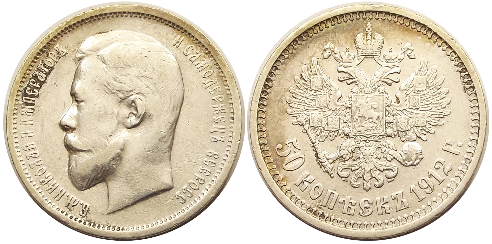 50 kopek 1912 Oroszország, nagyon szép állapotban, II. Miklós portréjával. (fl
