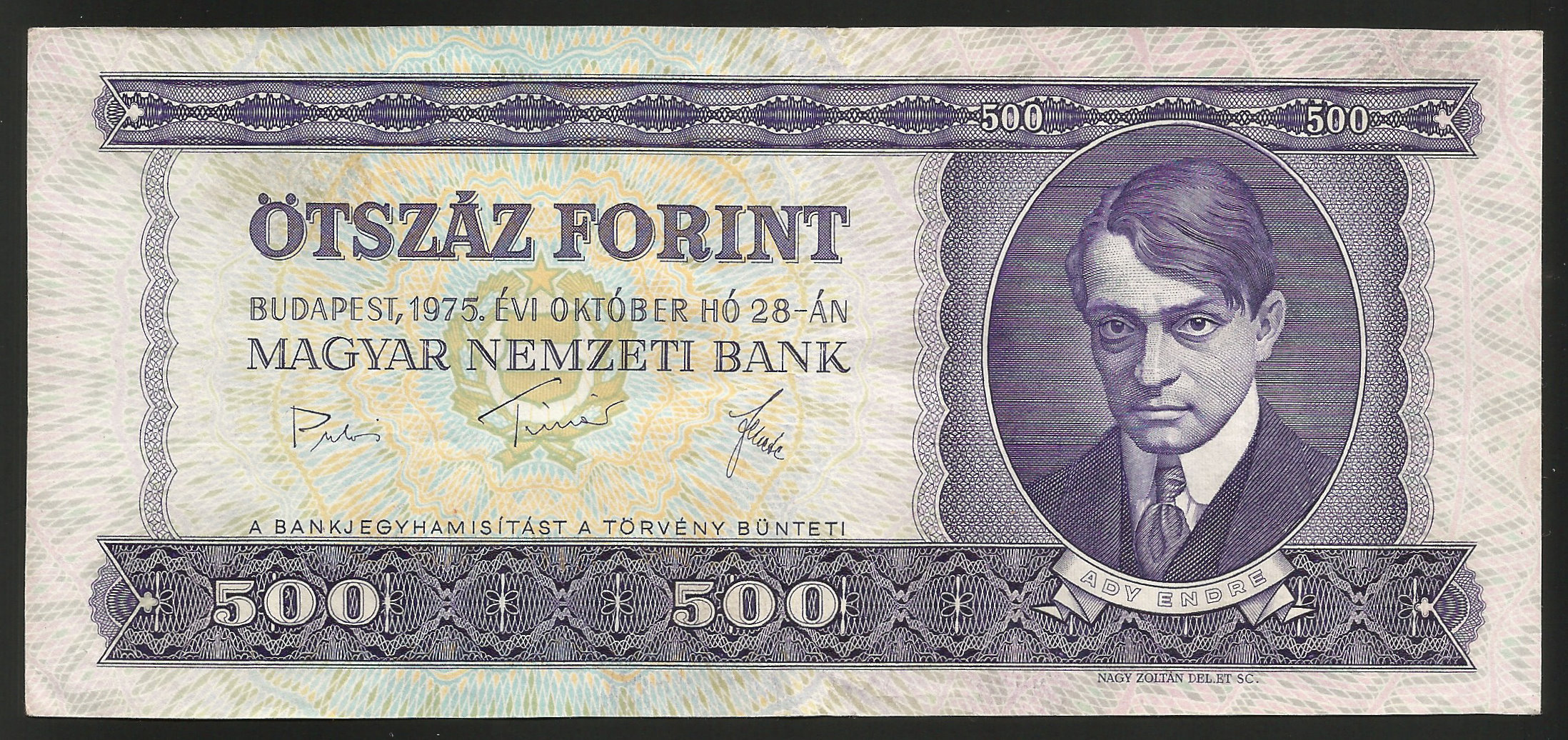 500 forint 1975 nagyon szép állapotban, hajtásokkal, erős papírral (g