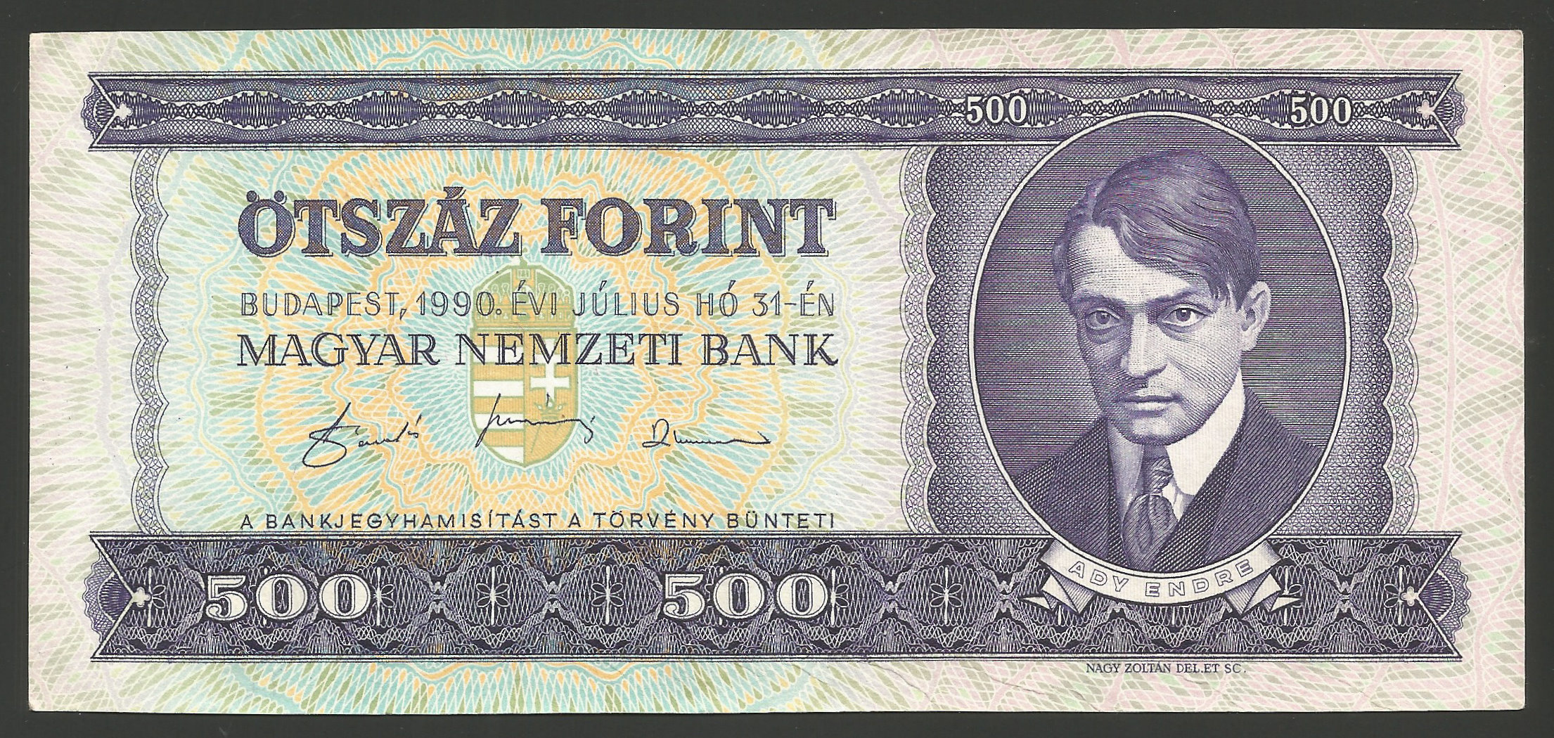 500 forint 1990 nagyon szép eredeti állapotban, enyhe hajtásokkal, szép erős papírral (bp