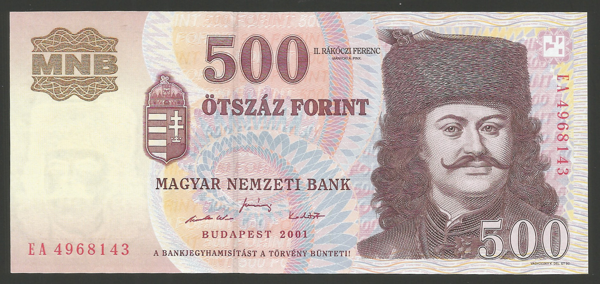 500 forint 2001 EA, kiváló bankfriss állapotban. Sorszám változhat, több db van. (l