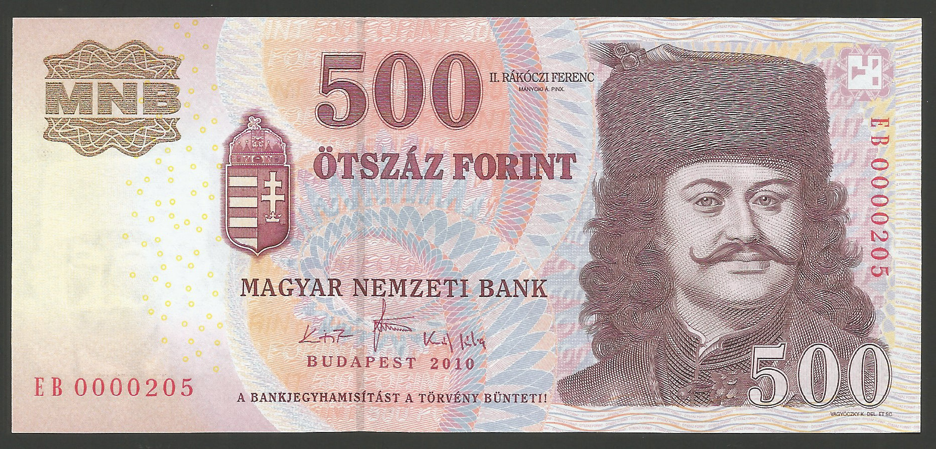 500 forint 2010 EB – alacsony sorszám, kiváló hajtatlan állapotban (k bp