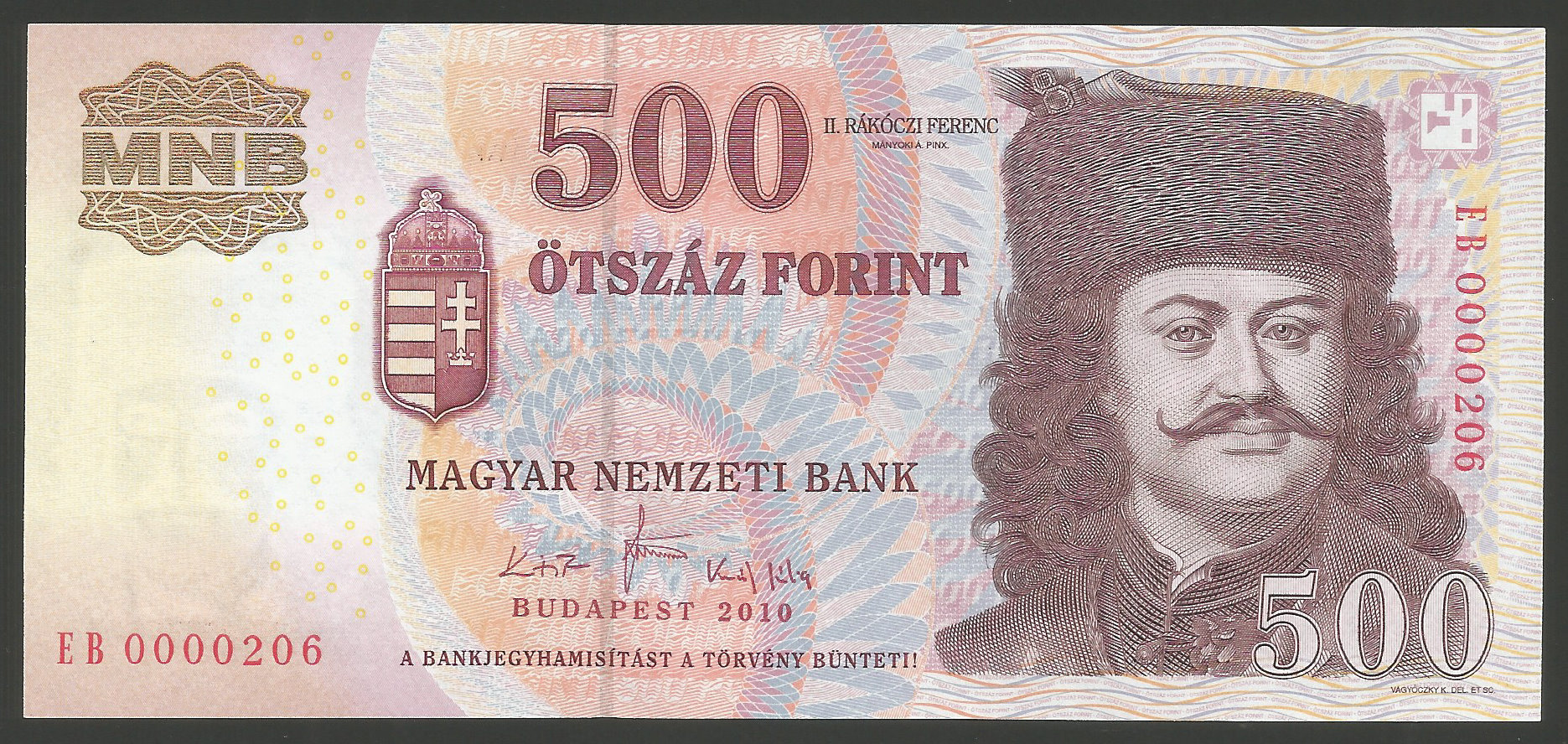 500 forint 2010 EB – alacsony sorszám, kiváló hajtatlan állapotban (k bp