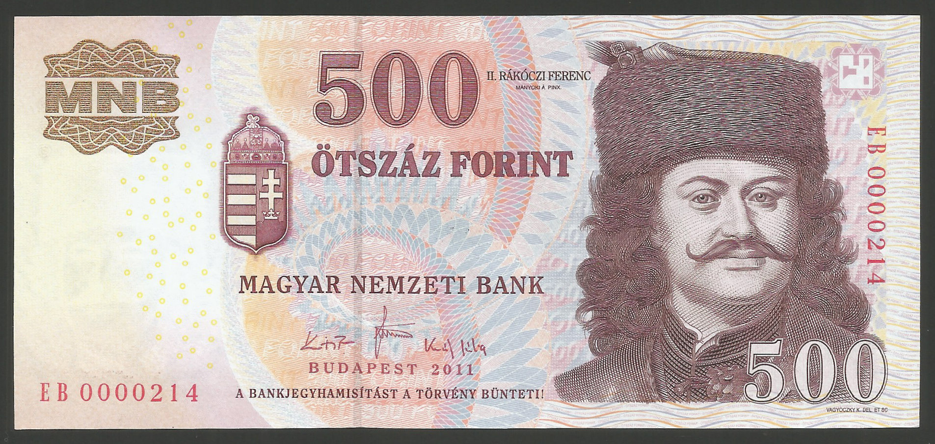 500 forint 2011 EB – alacsony sorszám! (214), kiváló hajtatlan állapotban (k bp