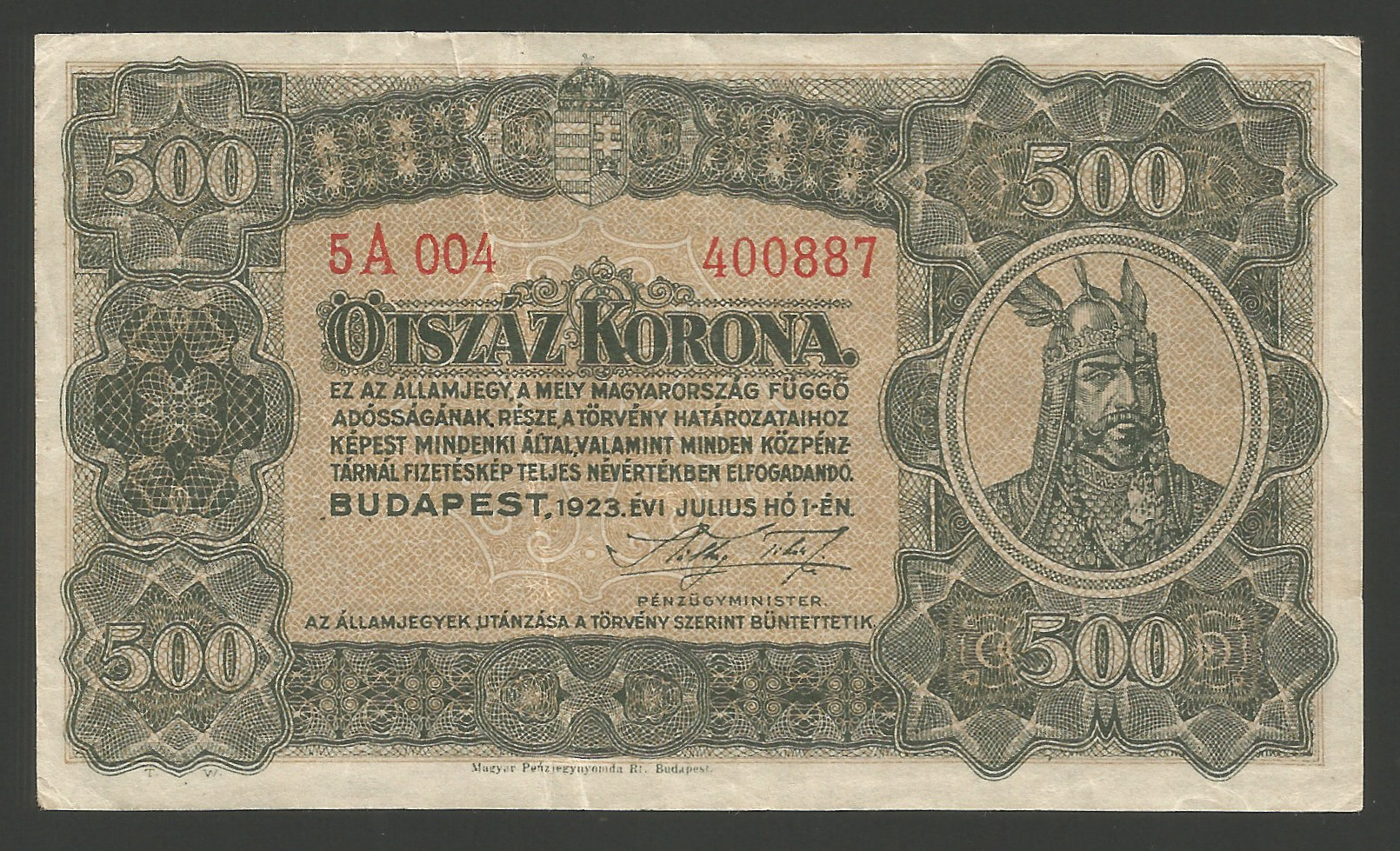 Főoldal Papírpénzek Magyar papírpénzek Korona rendszer 1892-1925 500 korona 1923