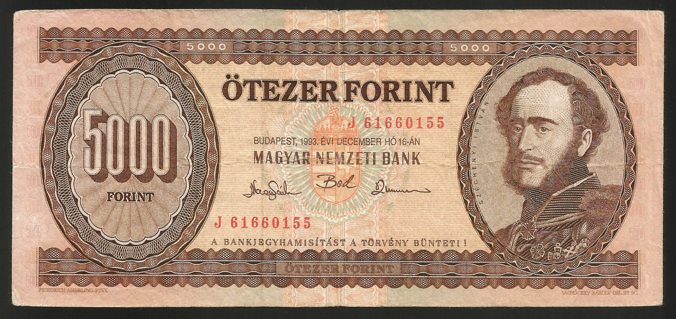 5000 forint 1993 J használt, eredeti tartásban. (g