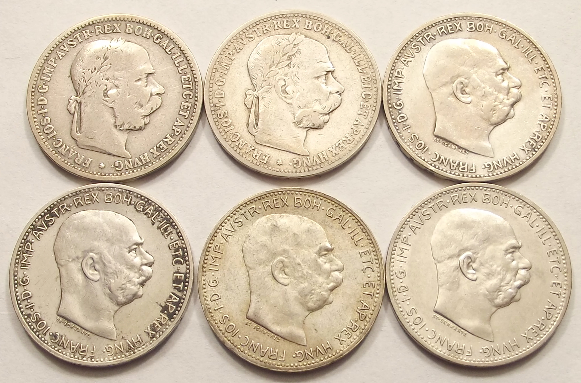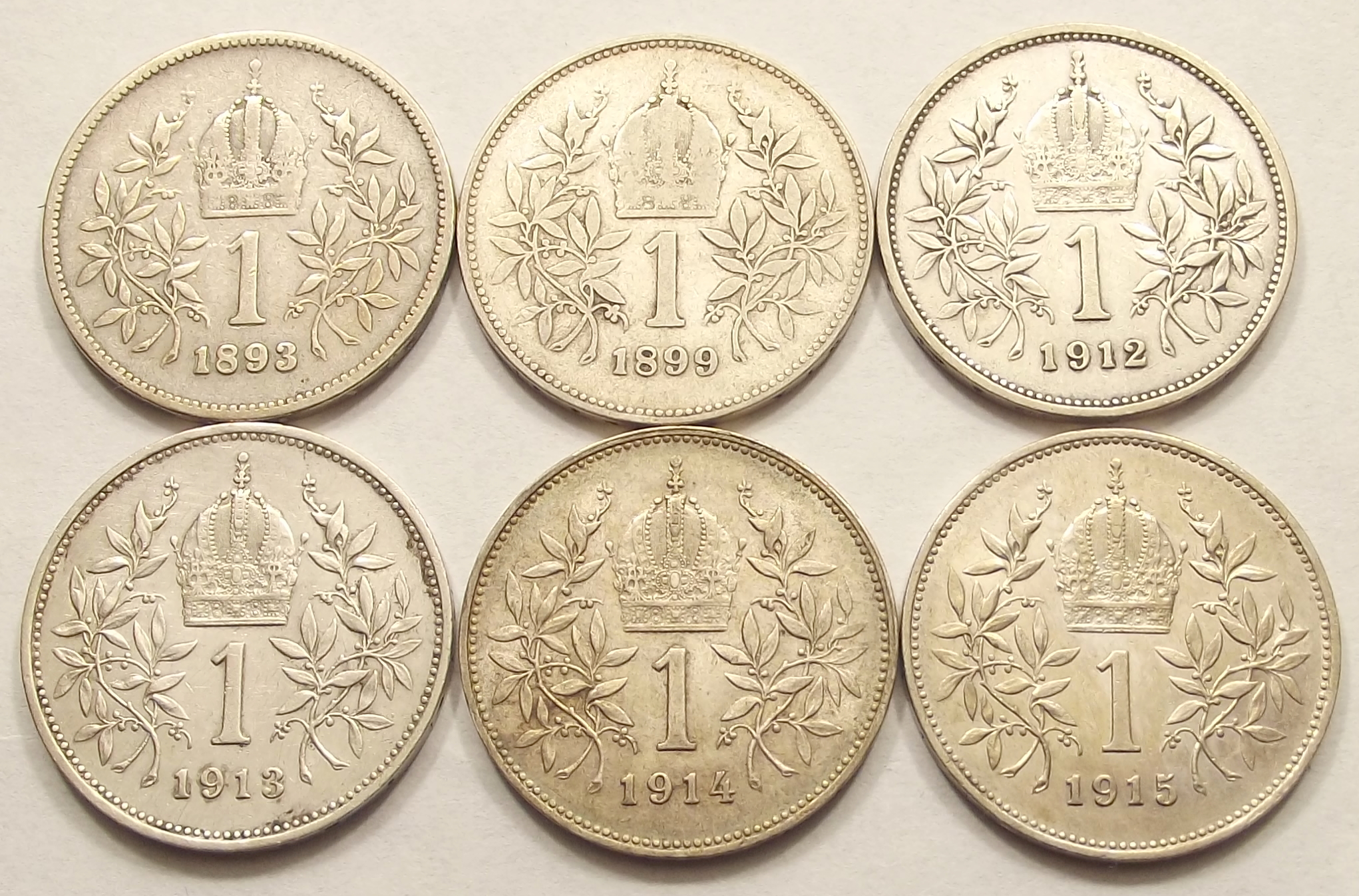 6 db ezüst 1 corona 1893-1915 Ferenc József