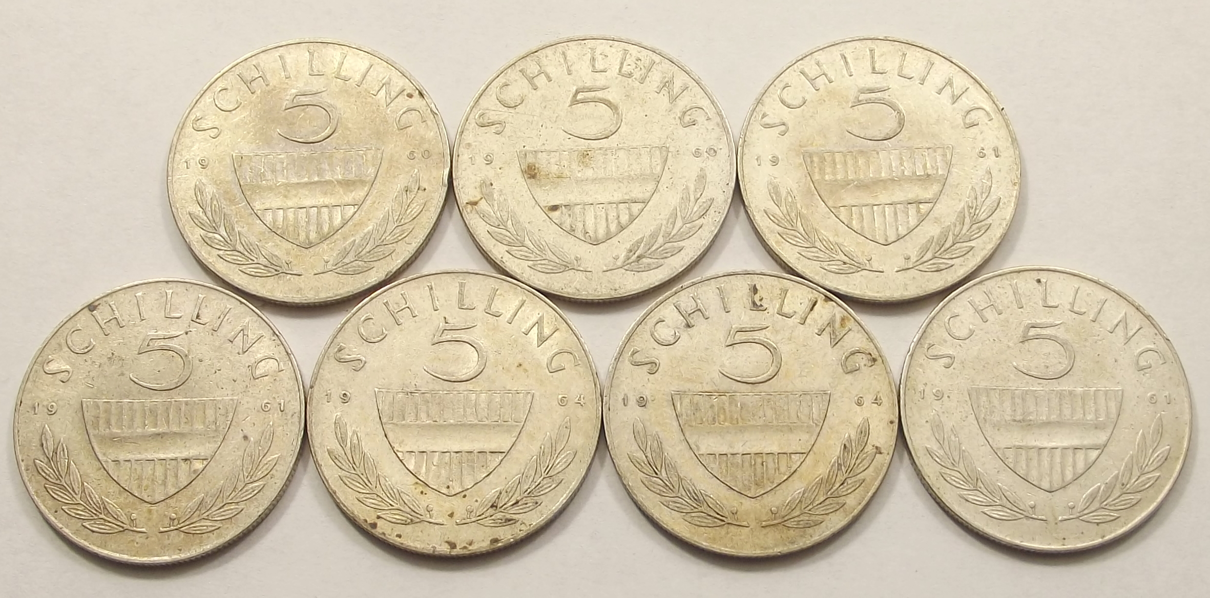 7 db ezüst 5 schilling 1960-1964 Ausztria
