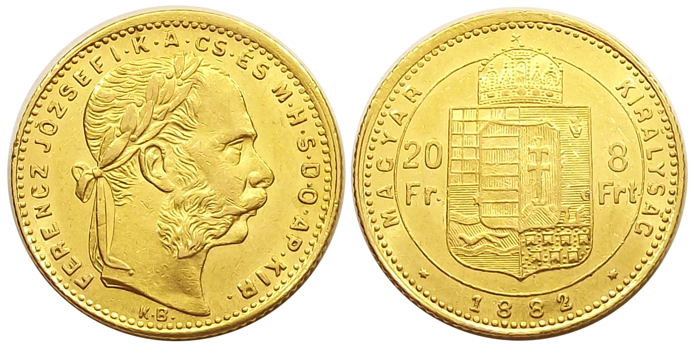 8 forint 1882 Ferenc József, kiváló tartásban. (l