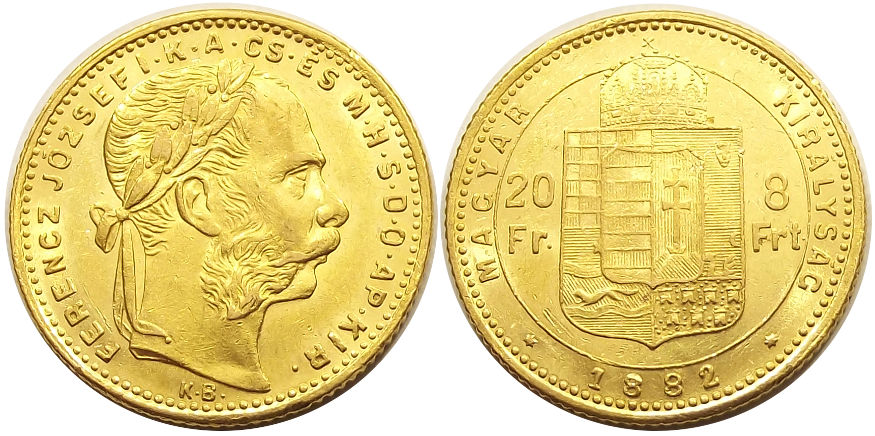 8 forint 1882 Ferenc József, kiváló állapotban, szép fénnyel (vt