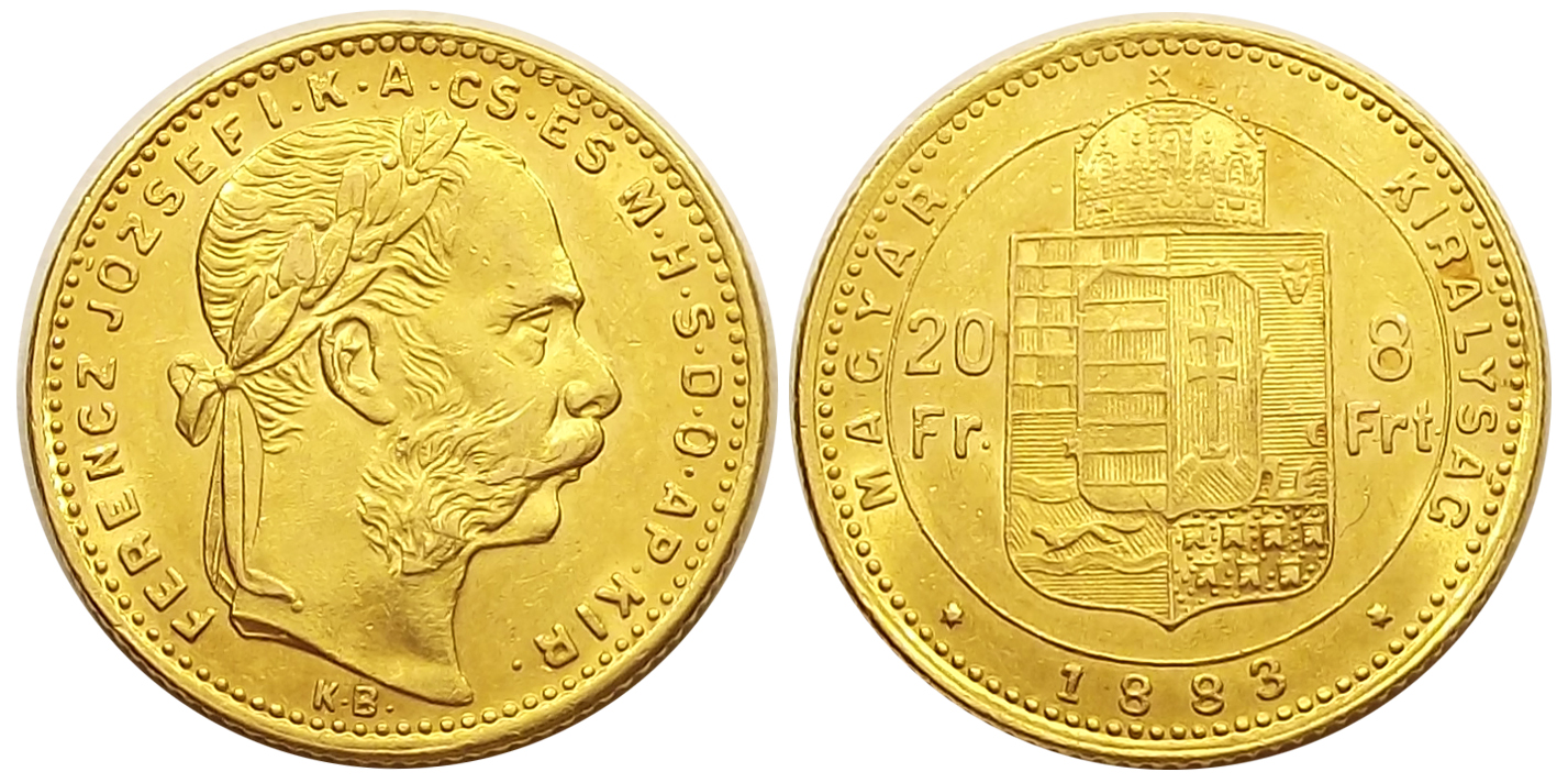 8 forint 1883 Ferenc József, kiváló tartásban. (l