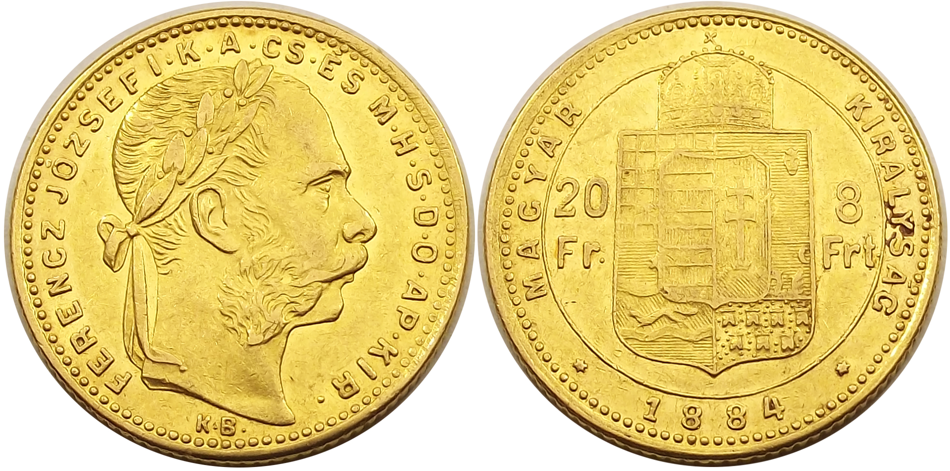 Főoldal Aranypénzek Magyar aranypénzek Ferenc József 1848-1916 8 forint 1884 Ferenc József