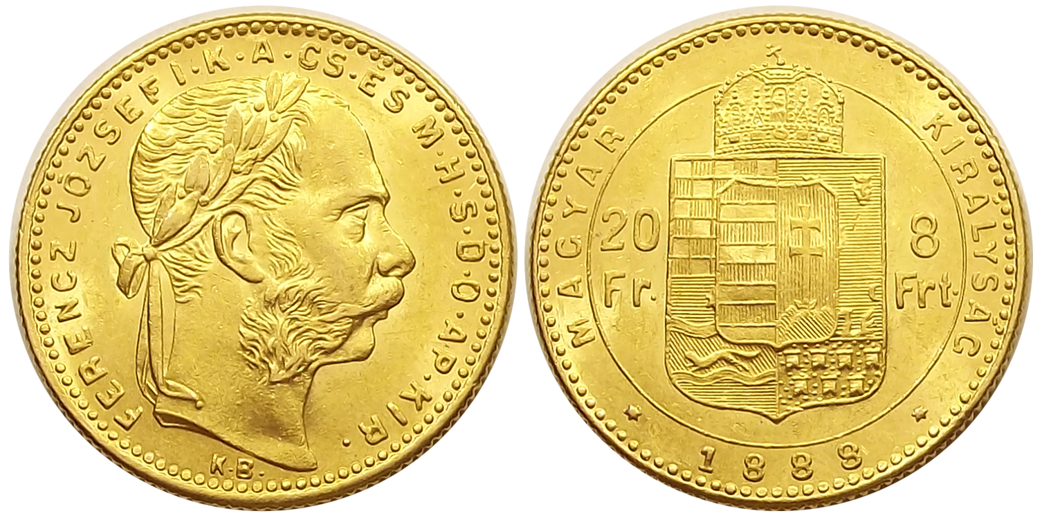 8 forint 1888 Ferenc József, kiváló tartásban. (l