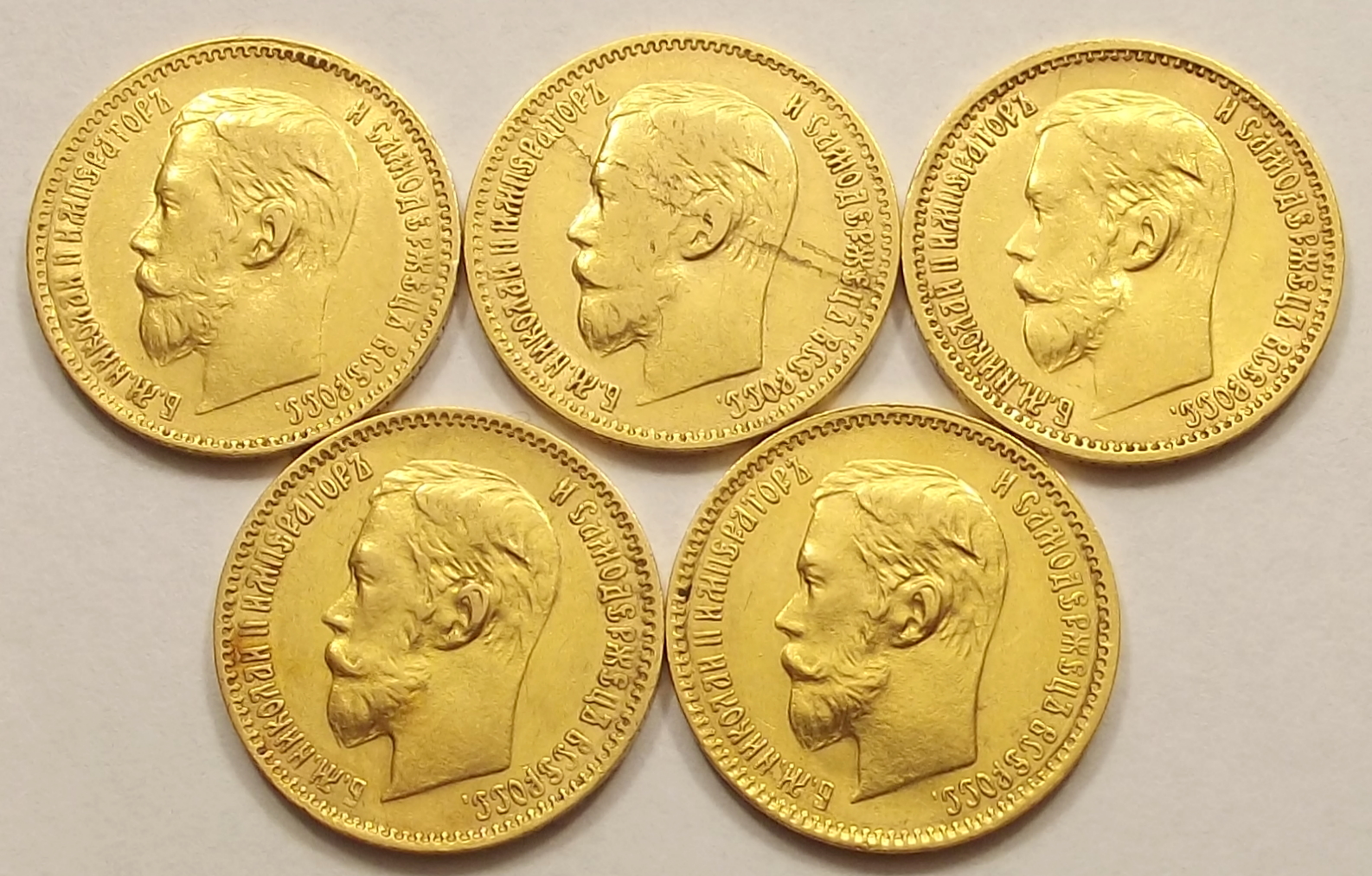 Arany 5 rubel sor 1897-1901 Oroszország, szép állapotban, II. Miklós cár portréjával