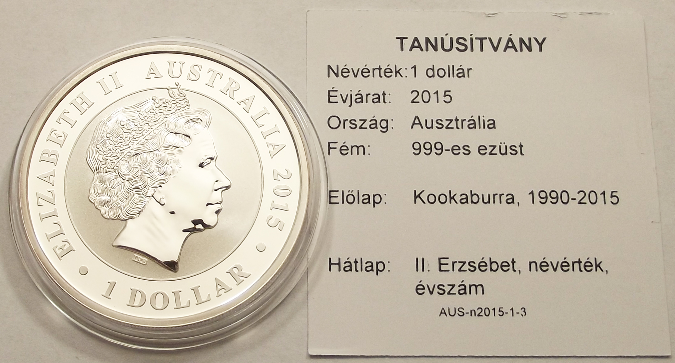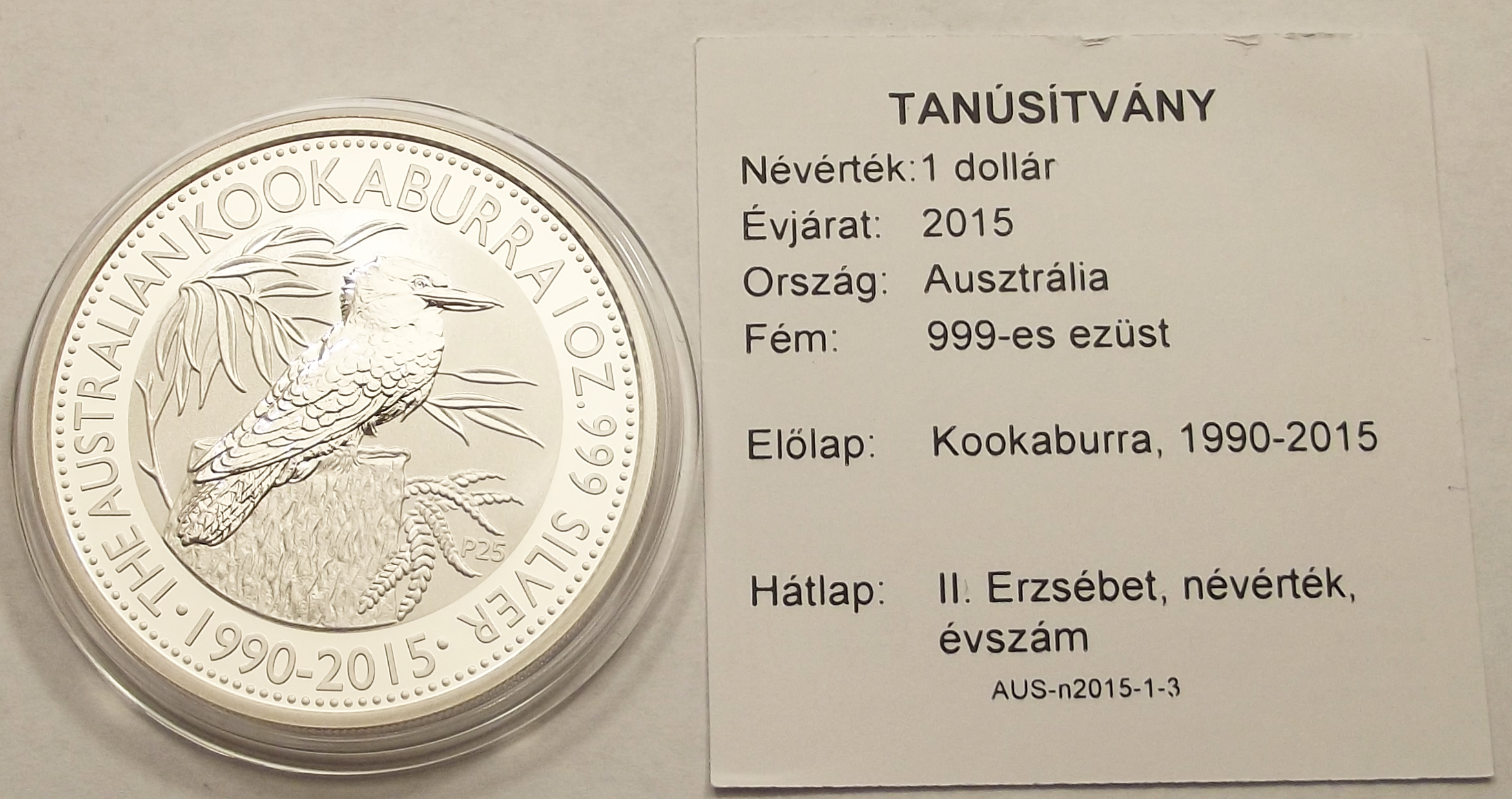 Ausztrália 1 dollár 2015 (kookaburra) 1 uncia színezüst kiváló állapotban. (bud.ör