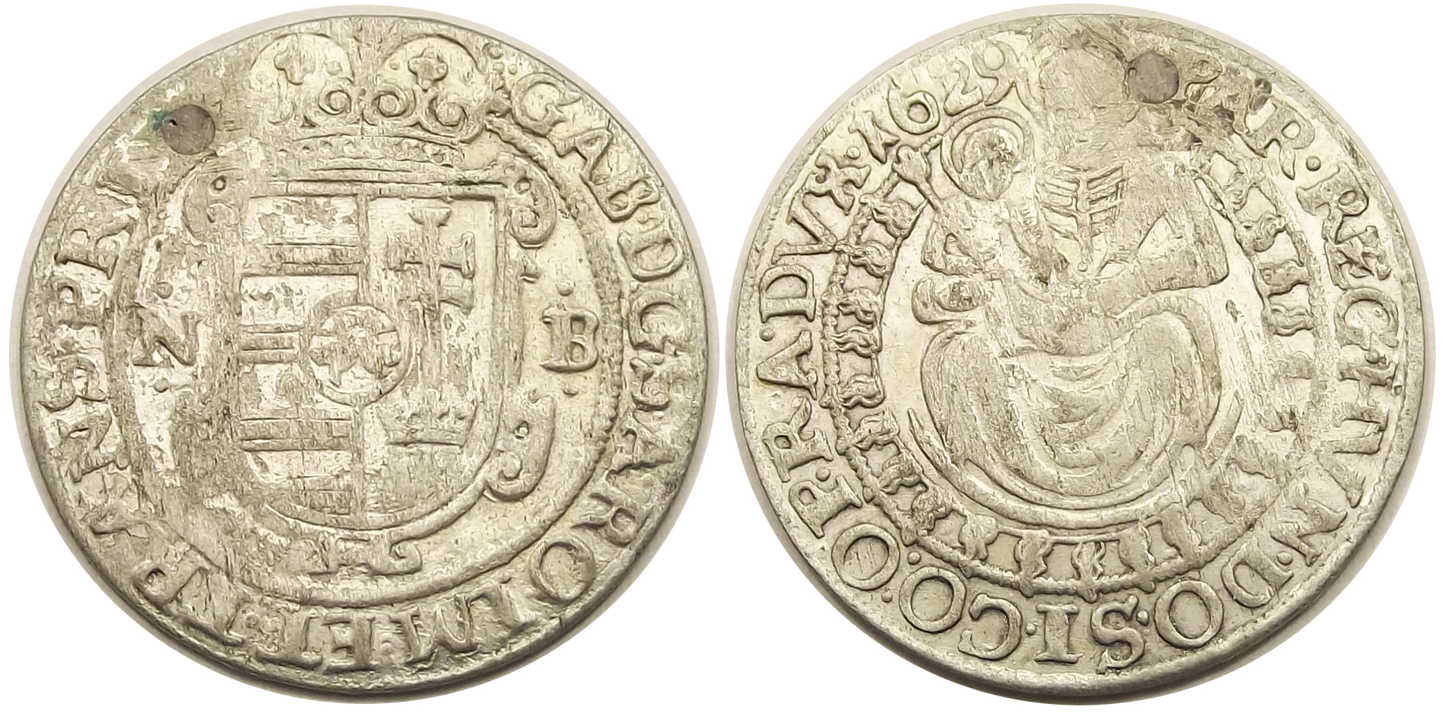 Bethlen Gábor garas 1629 NB, szép állapotban, foltozott lyuk (baj.