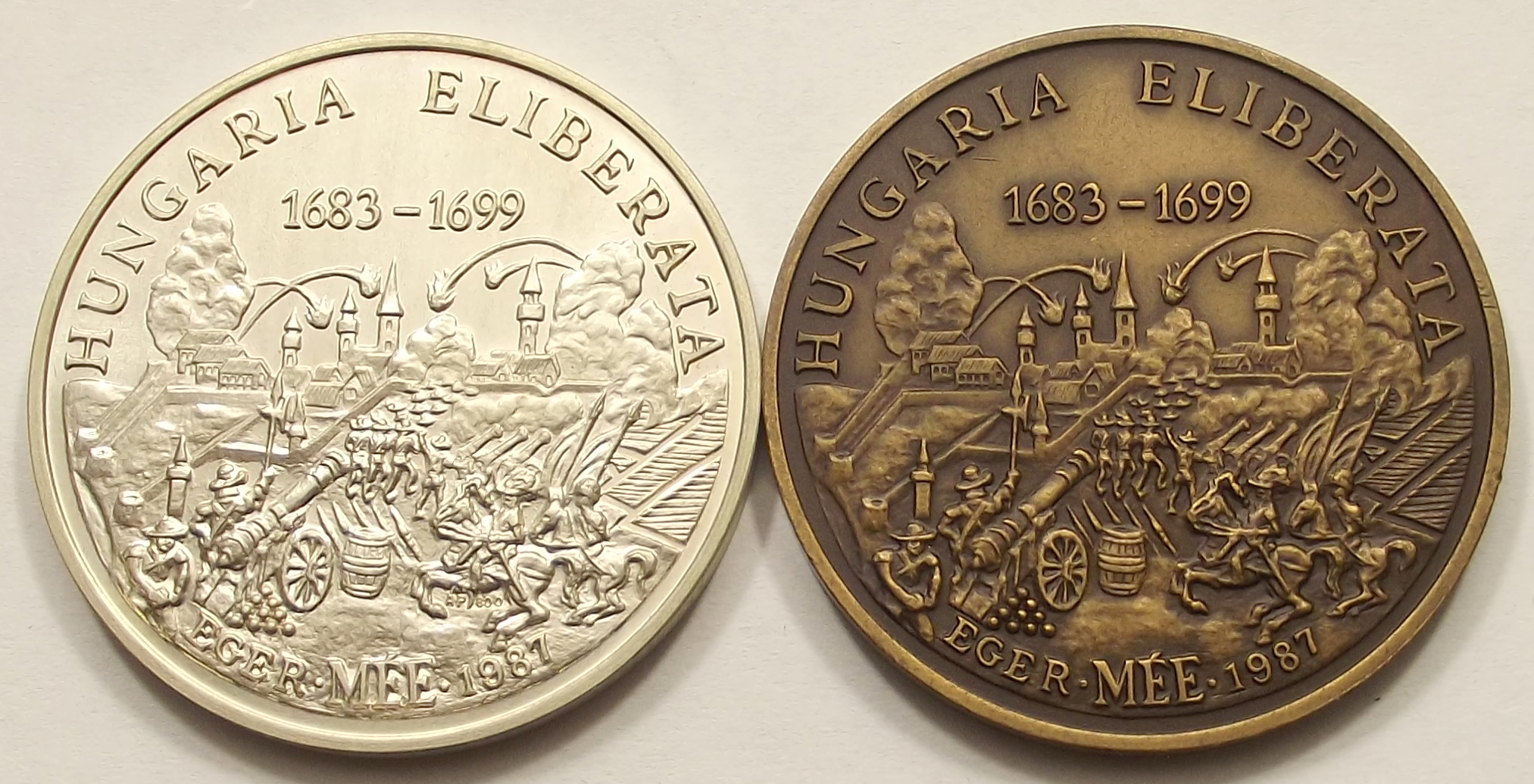 Eger felszabadulása a török alól ezüst + bronz pár kiváló tartásban, enyhe foltok az érméken (ta