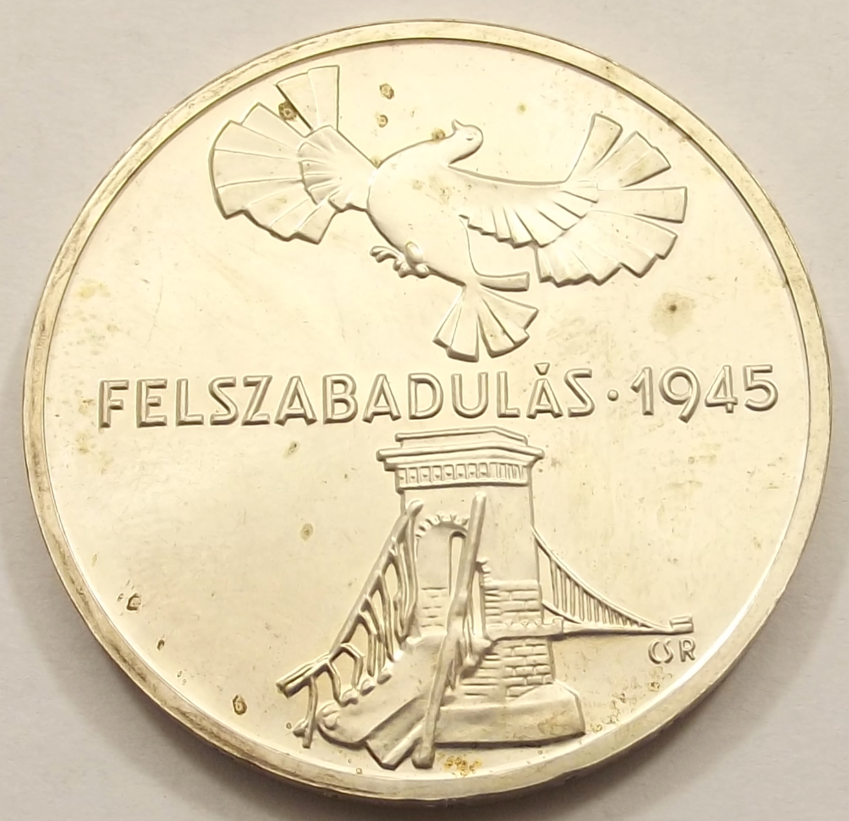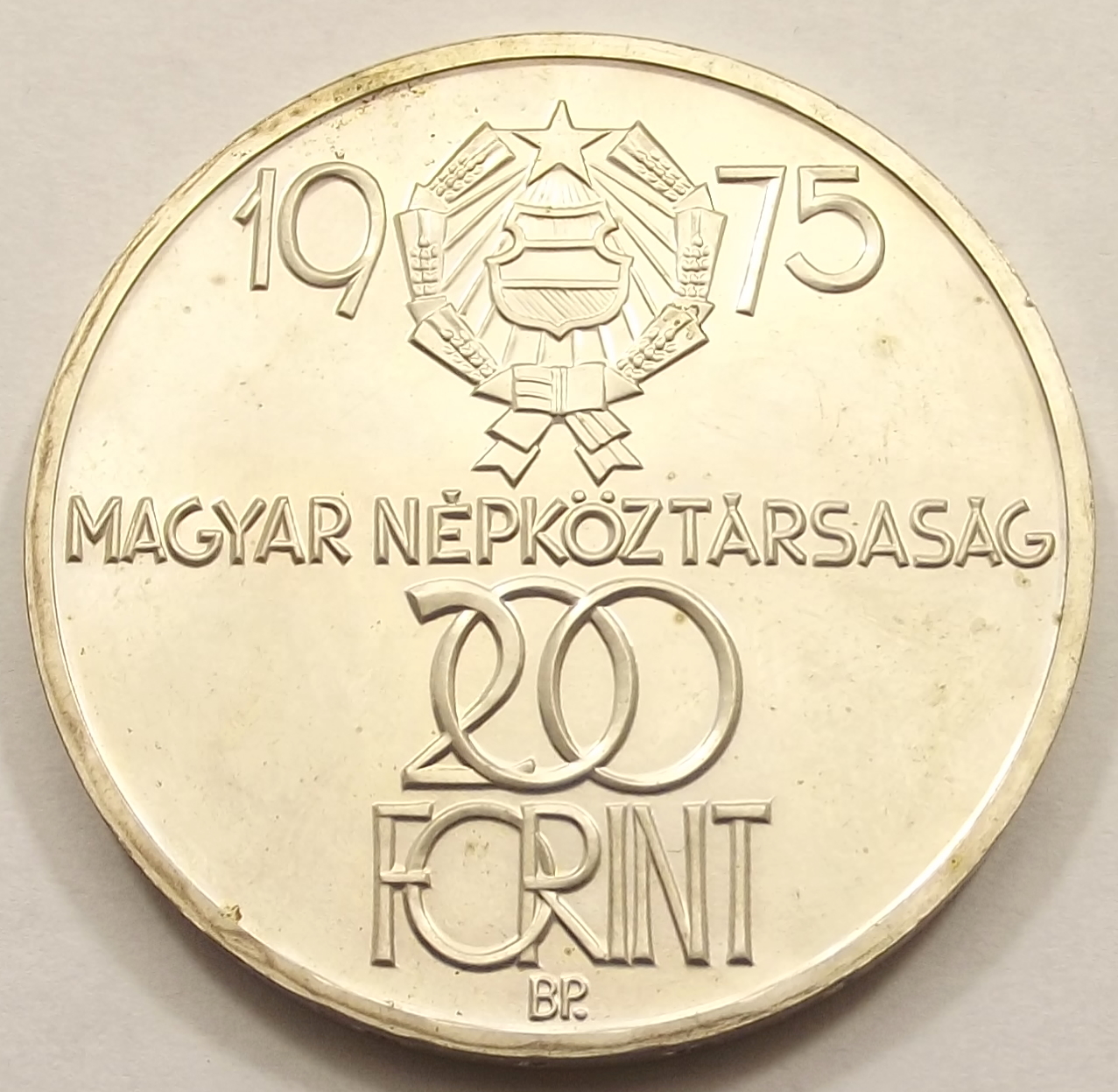 Felszabadulás 200 forint 1975 BU, szép állapotban, enyhe foltok az érmén (baj