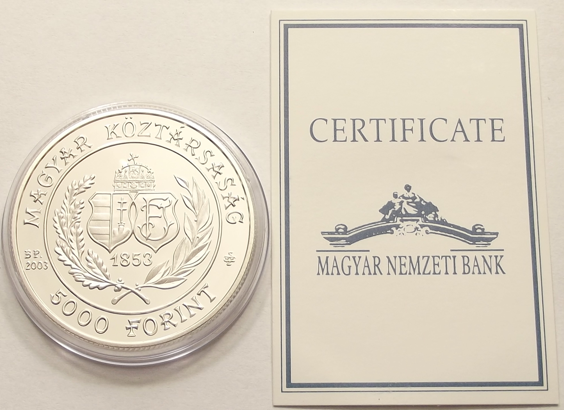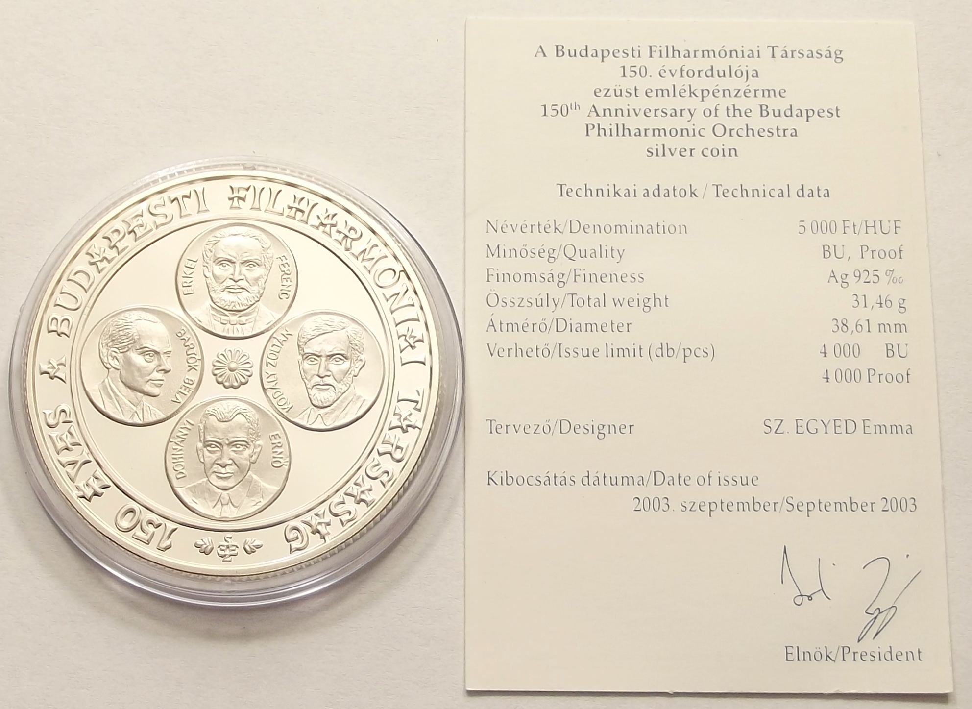 Filharmóniai társaság 5000 forint 2003 PP, kiváló állapotban, certificate-el (vl