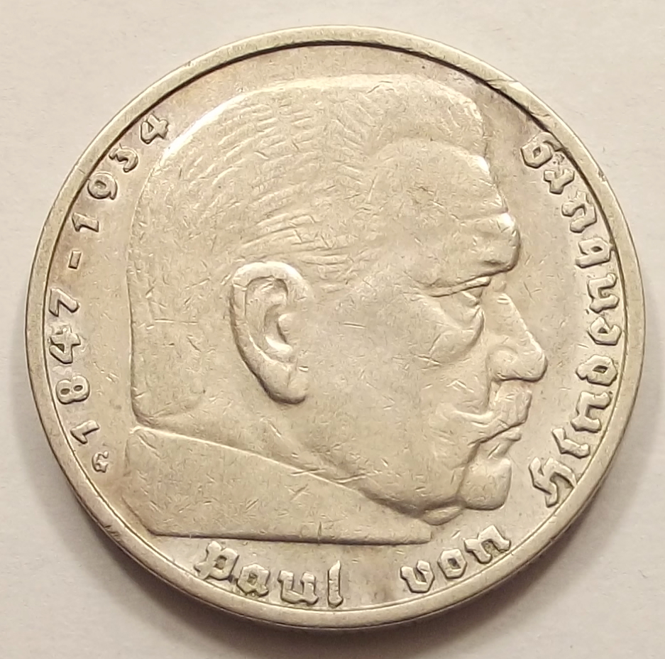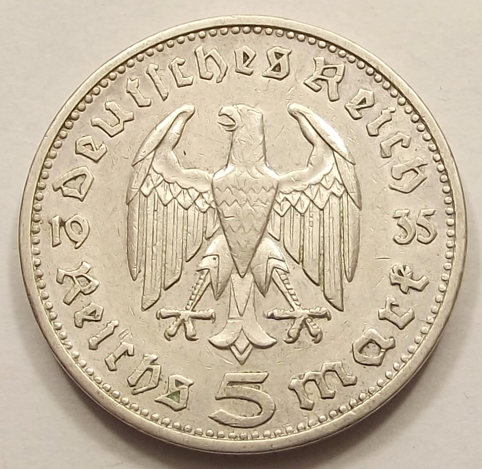 Hindenburg 5 márka 1935 G, nagyon szép állapotban. Ritkábban előforduló darab (kf