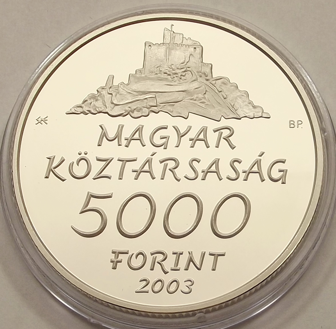 Hollókő 5000 forint 2003 PP kiváló állapotban, enyhe foltok az érmén (igá fb
