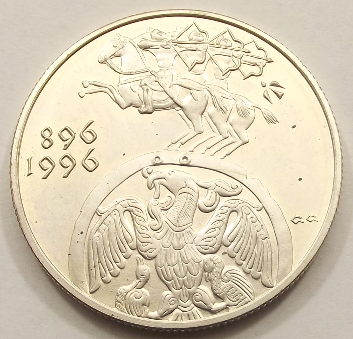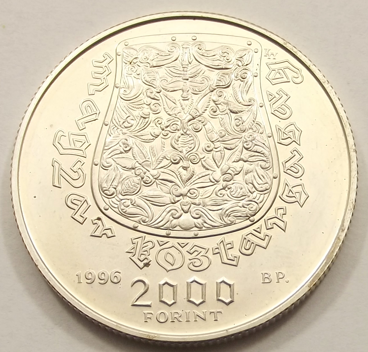 Honfoglalás 2000 forint 1996 BU kivitelben, nagyon szép állapotban, enyhe foltok az érmén (baj