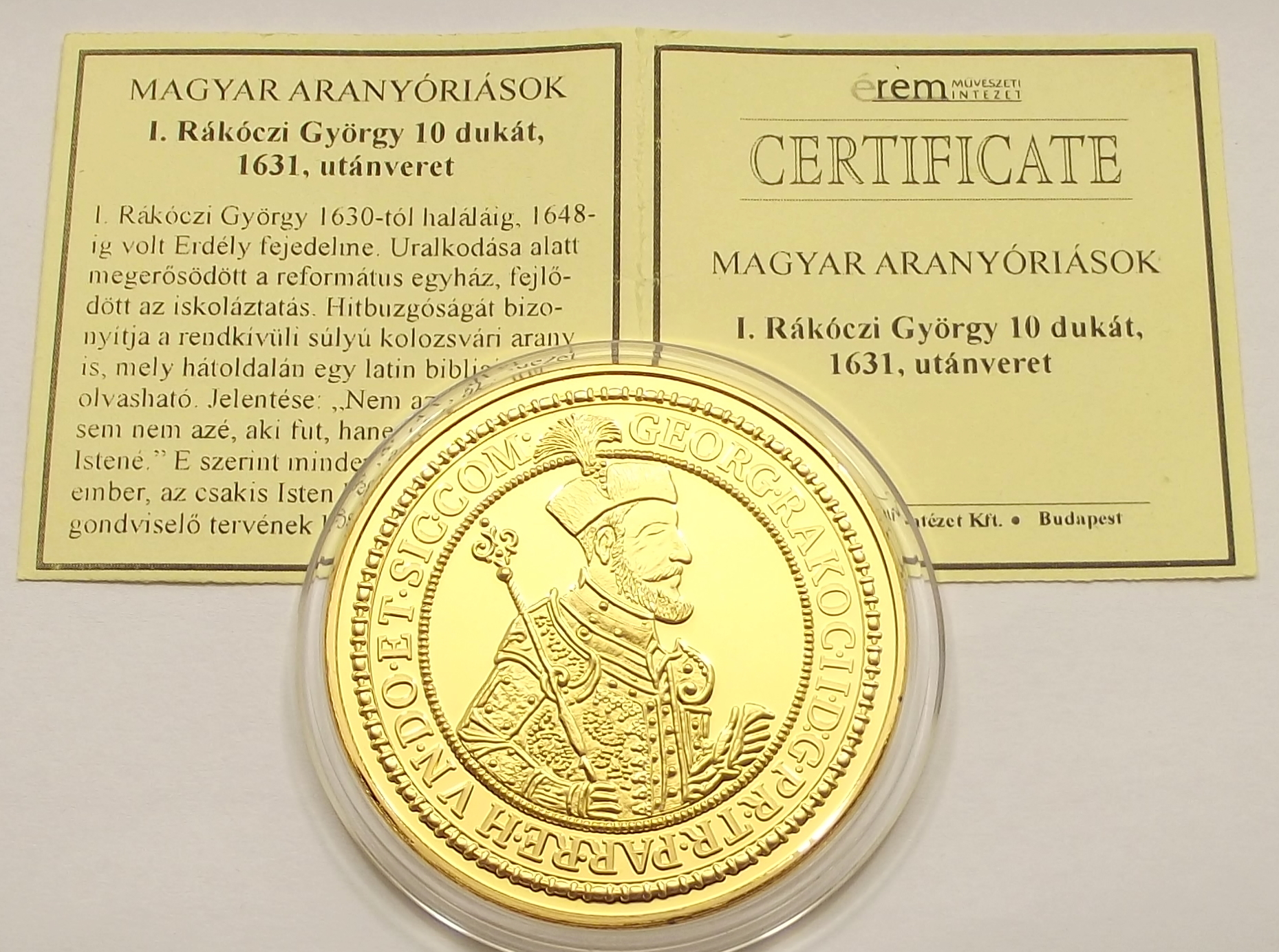 I. Rákóczi György 10 dukát 1631 utánveret kiváló állapotban, certificate-el (eb