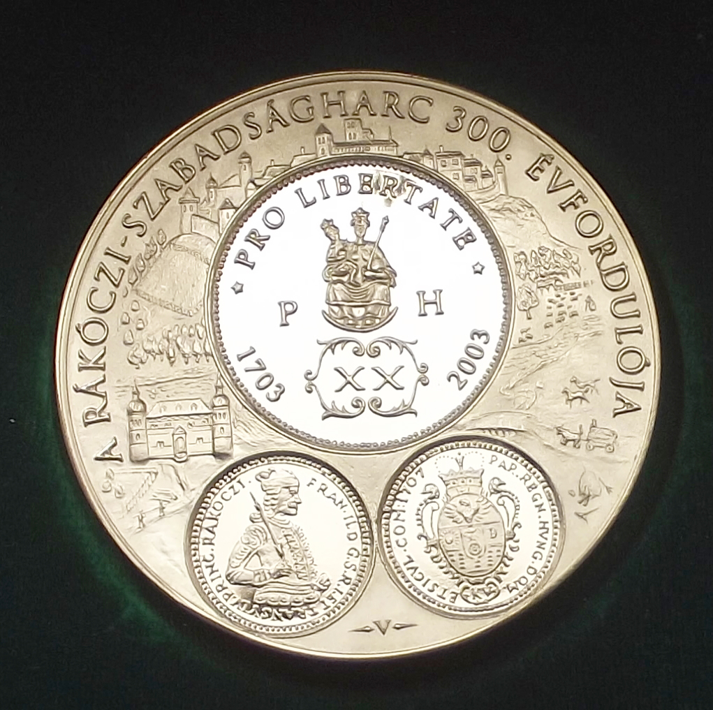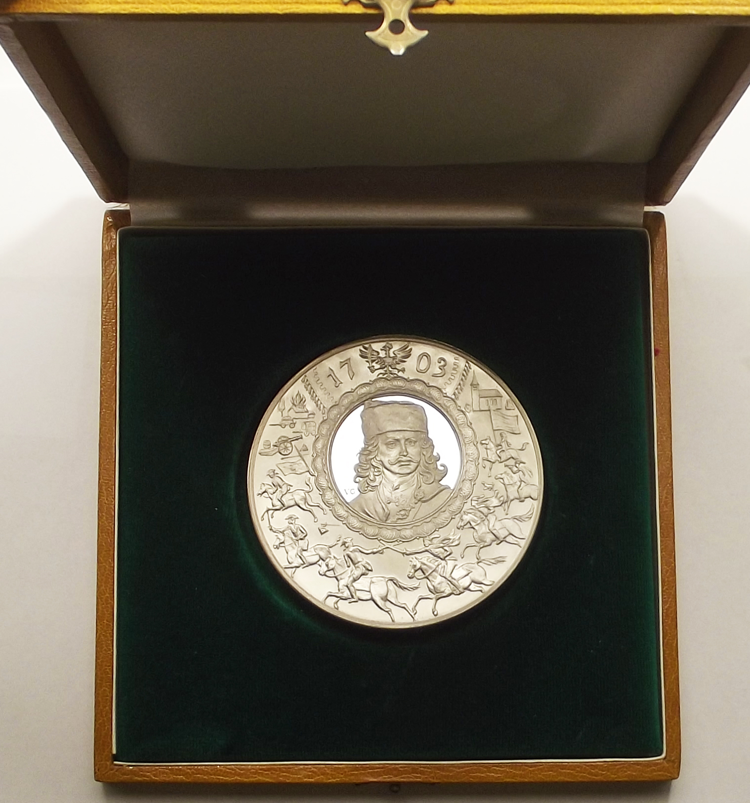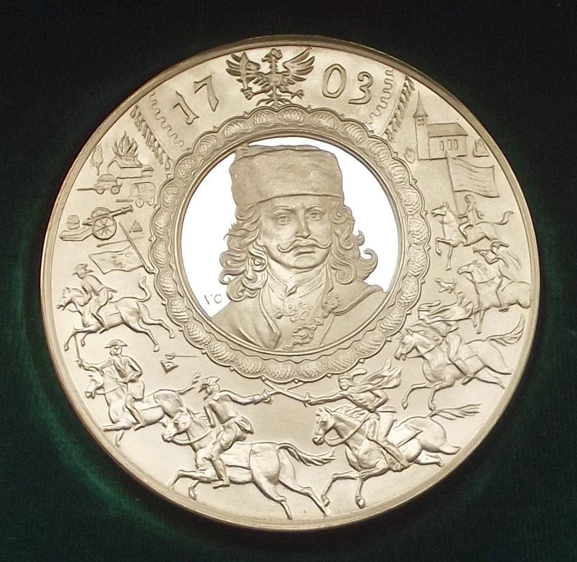 II. Rákóczi Ferenc 1/2 kg színezüst emlékérem kiváló állapotban, díszdobozban (l
