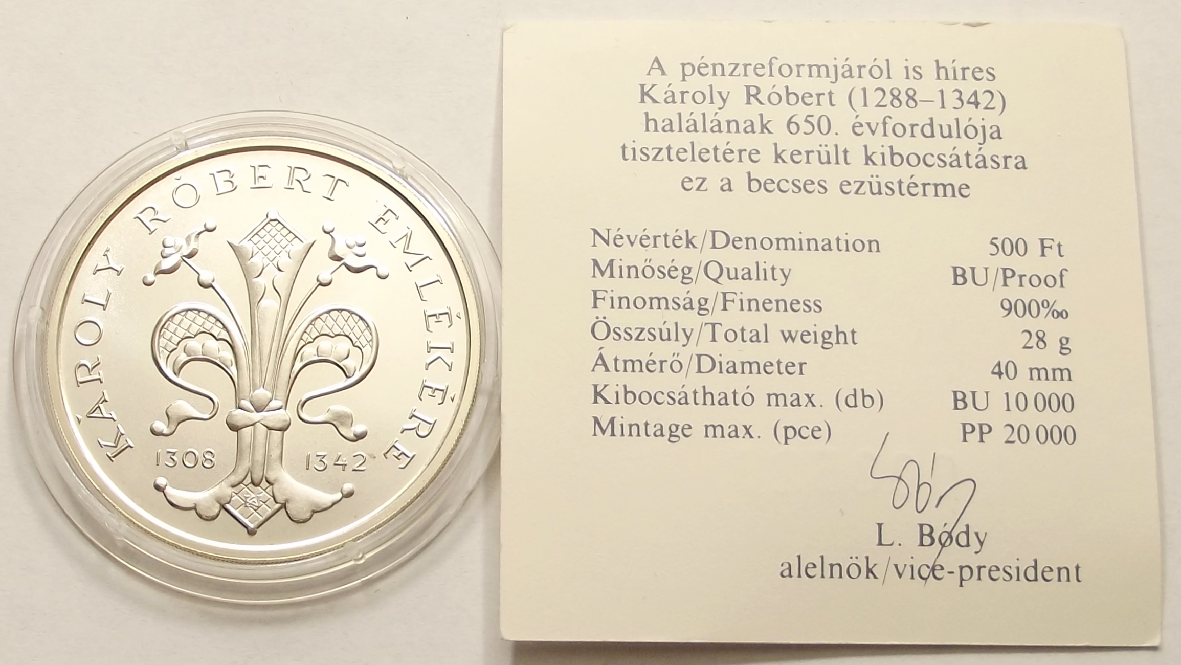 Károly Róbert 500 forint 1992 BU, kiváló állapotban, certificate-el (vl
