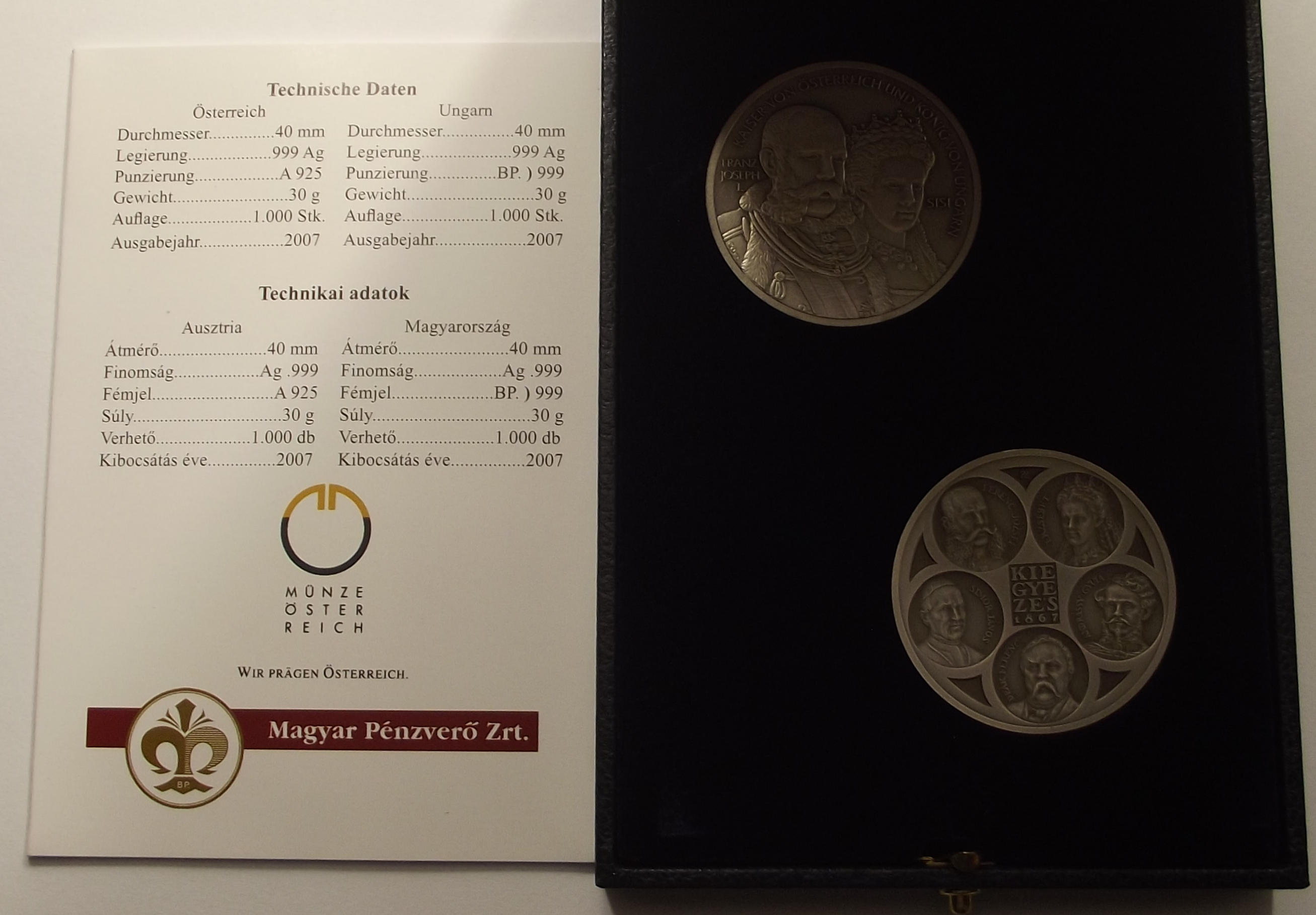 Kiegyezés osztrák-magyar érem pár díszdobozban