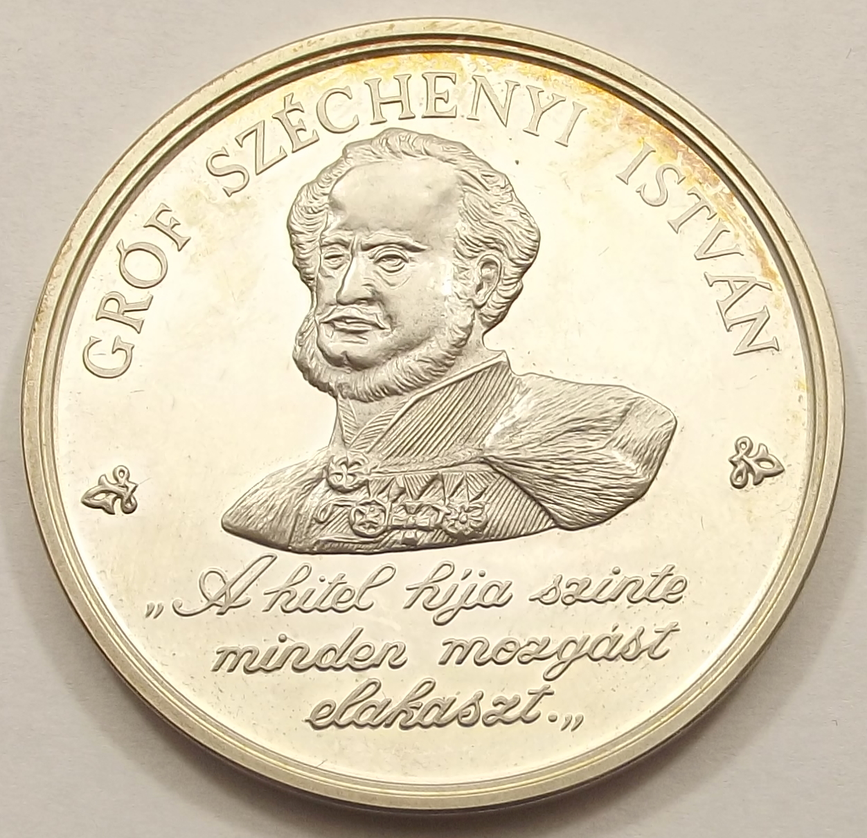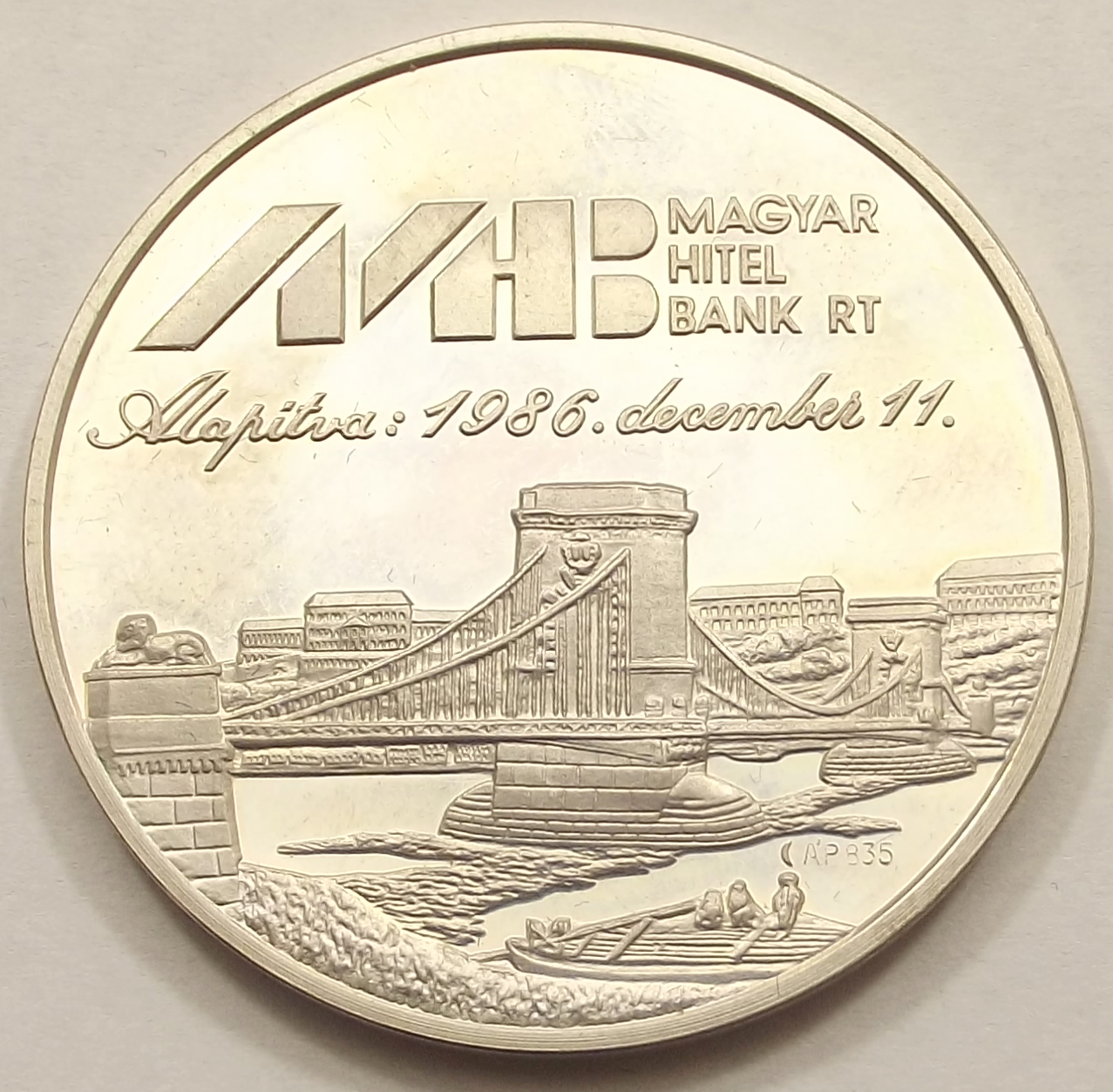 Magyar Hitel Bank Rt 1986 PP ezüst emlékérem szép állapotban, foltok az érem mindkét felén (vp