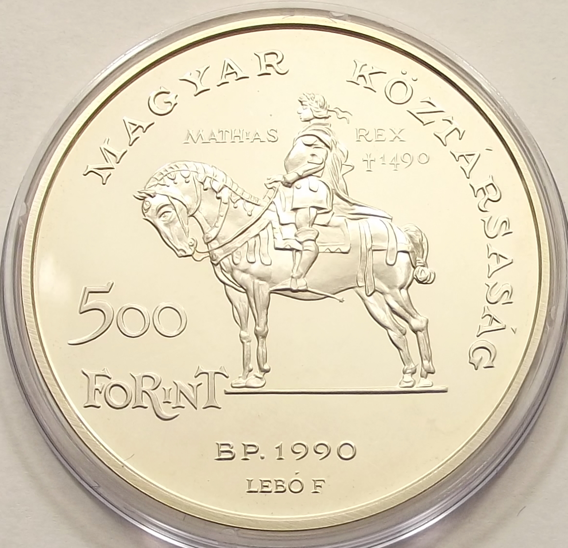 Mátyás és Beatrix 500 forint 1990 PP kivitelben, kiváló állapotban. Enyhe foltok, minimális mikrokarc. (ti
