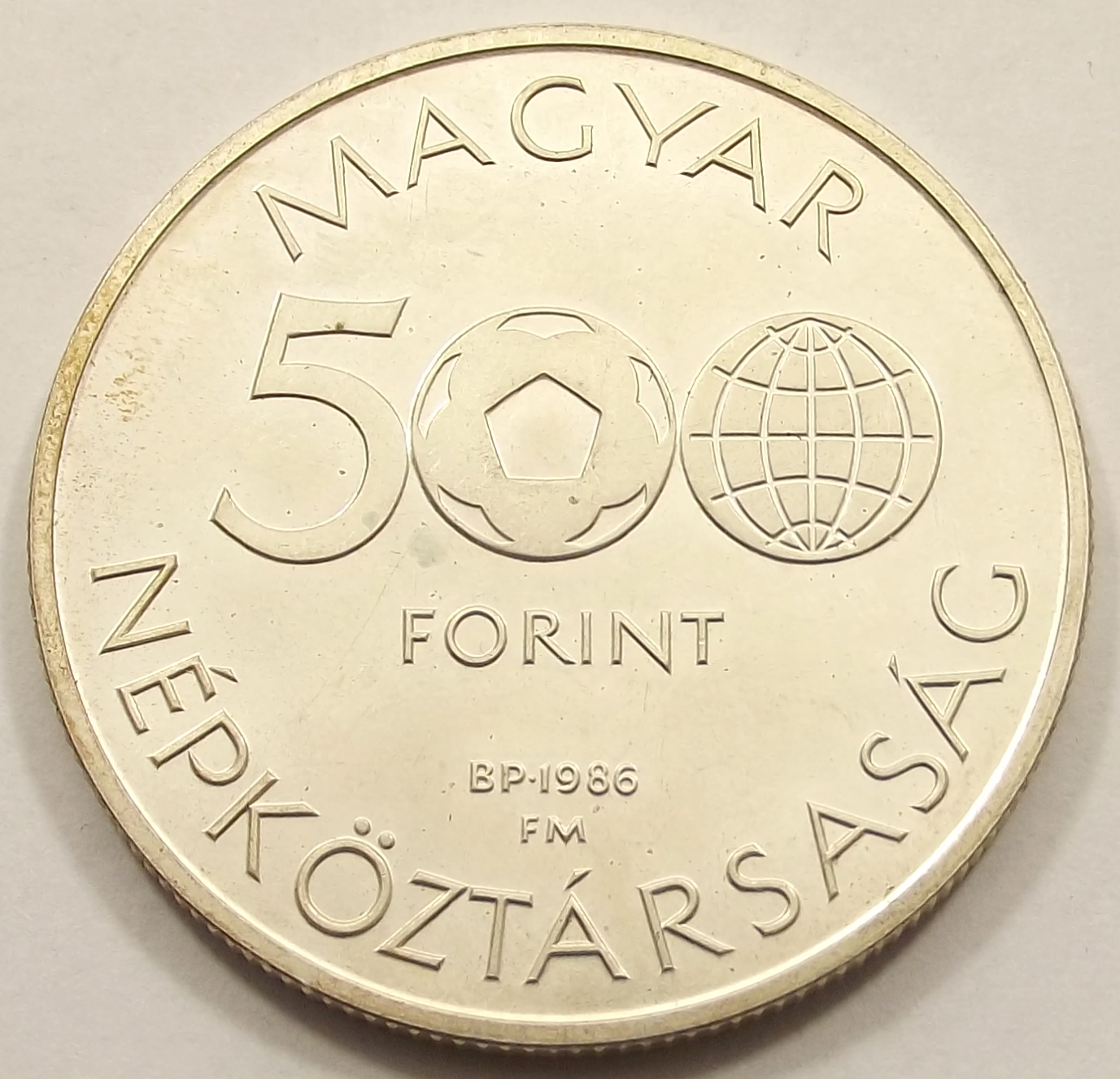 Mexikó Foci VB 500 forint 1986 BU szép állapotban, enyhe foltok az érme mindkét felén (moh