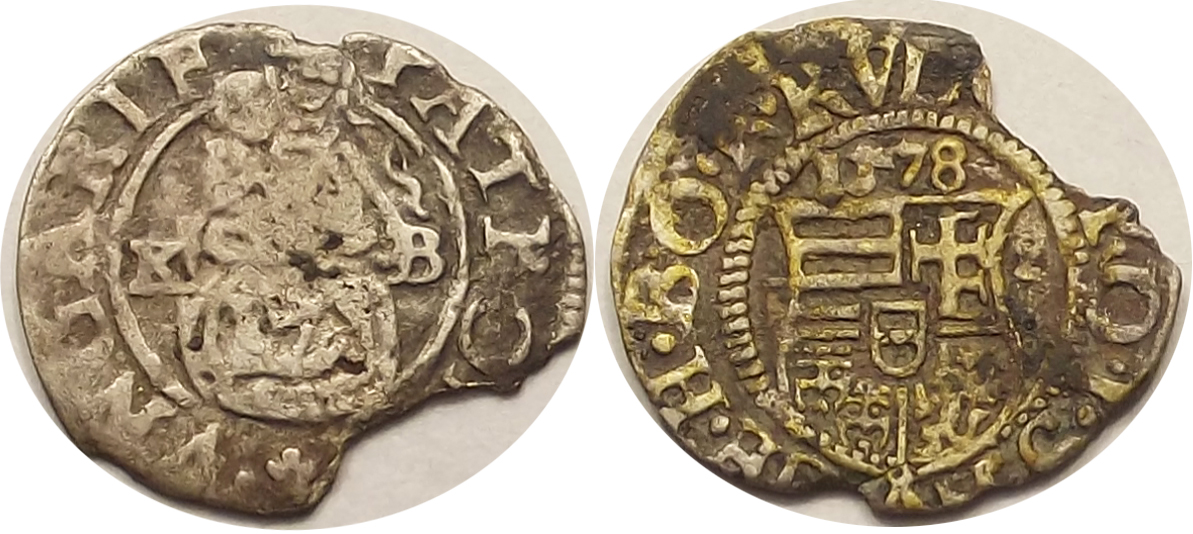 Miksa dénár 1578 KB, hiányos állapotban (bzs