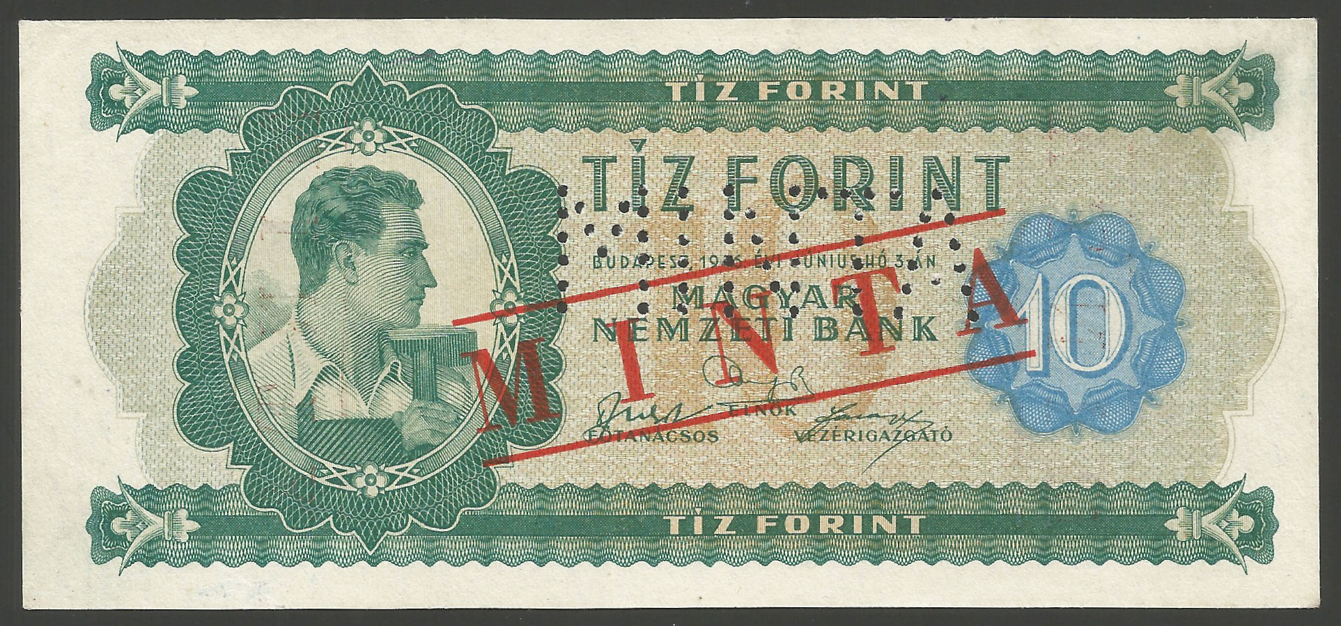 Főoldal Papírpénzek MINTA bankjegyek MINTA 10 Forint 1946