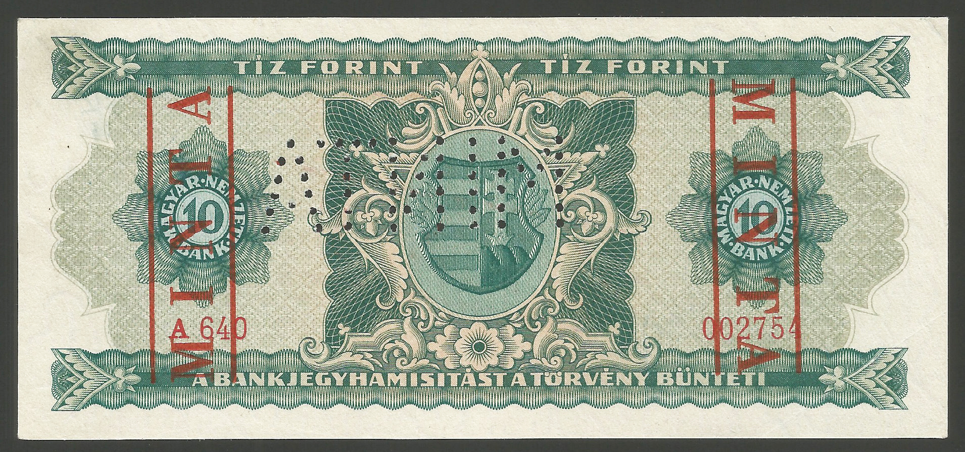 MINTA 10 forint 1946 perforáció + bélyegzés