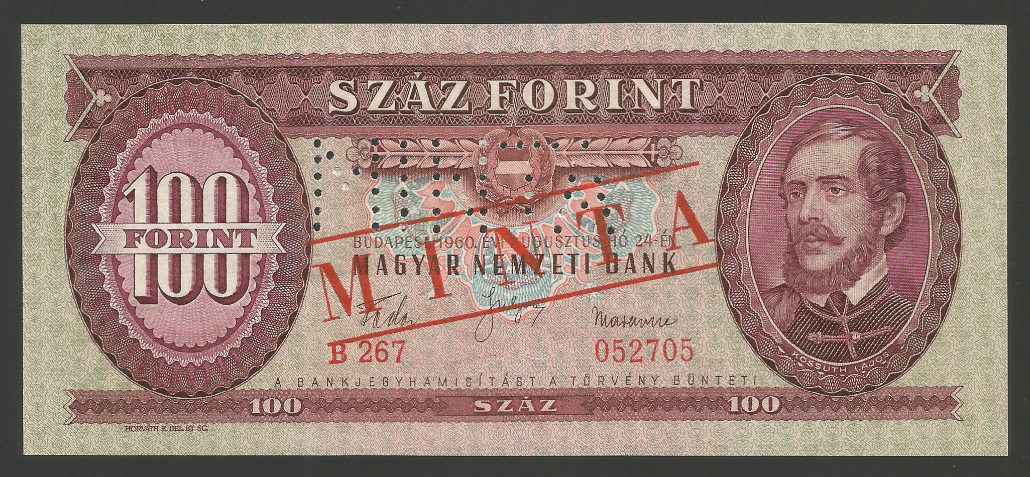 MINTA 100 forint 1960 – Kiváló tartású minta bankjegy, hajtatlan állapotban. (ml