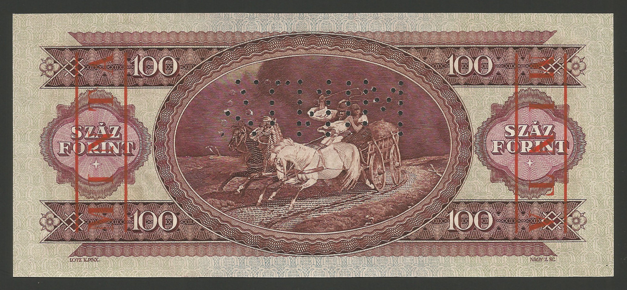 MINTA 100 forint 1960 – perf. + felülbélyegzés