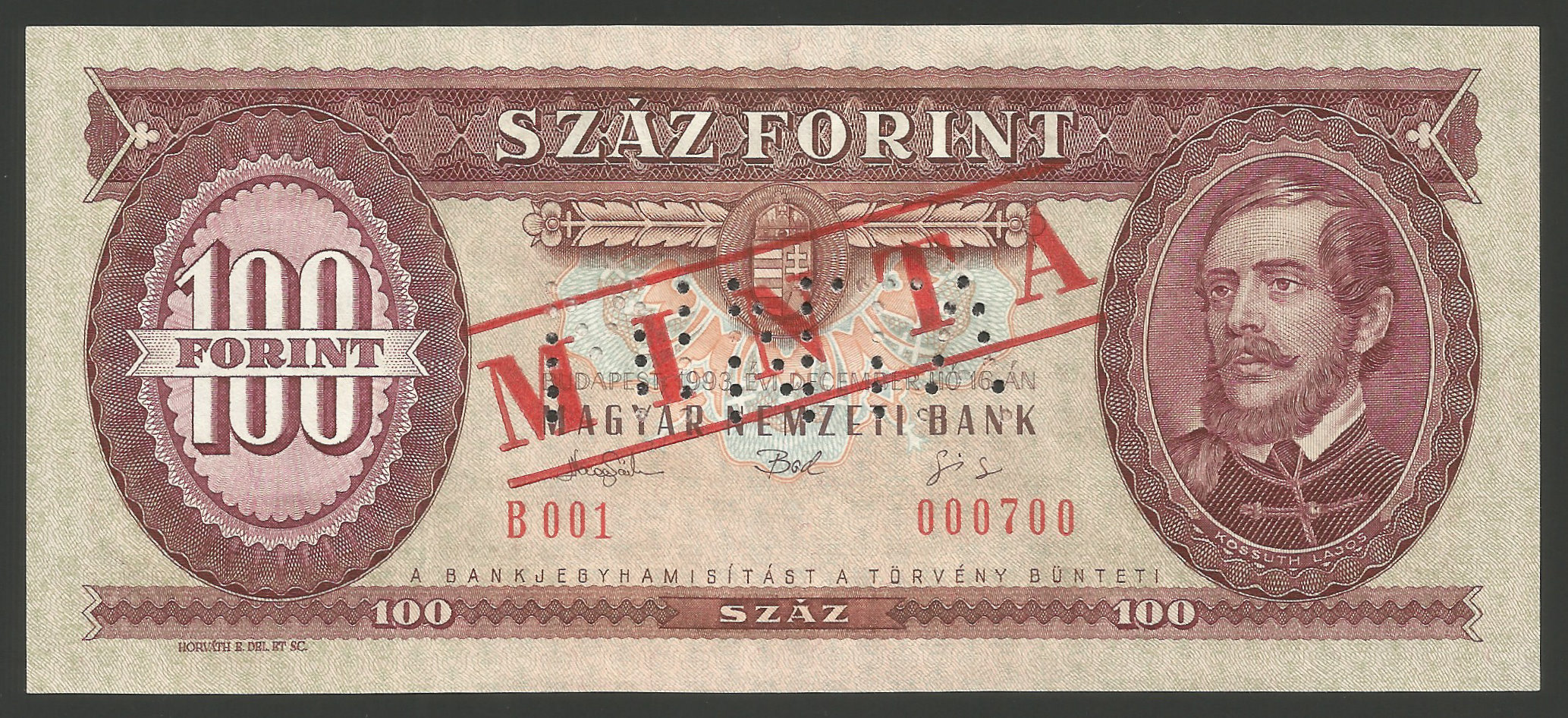MINTA 100 forint 1993 perforáció + bélyegzés kiváló hajtatlan állapotban (sf